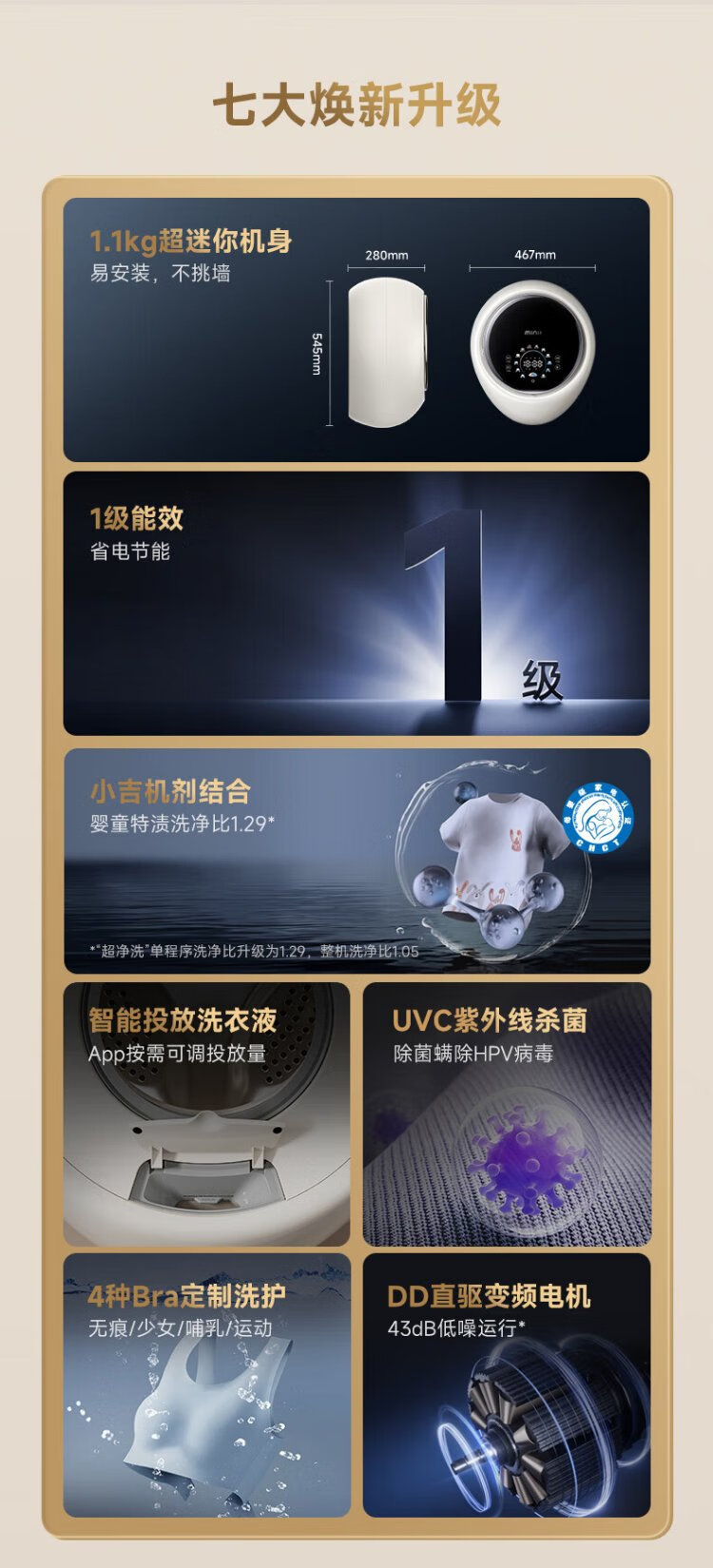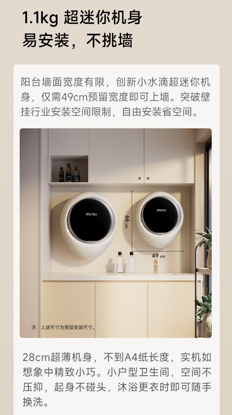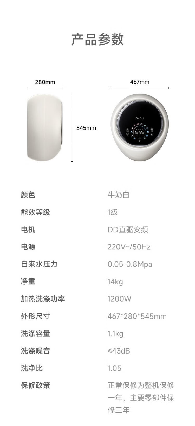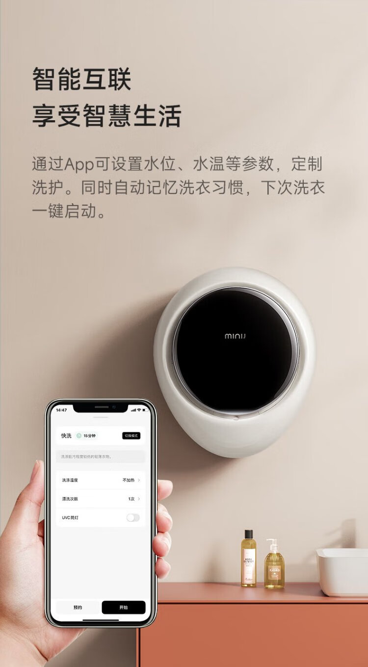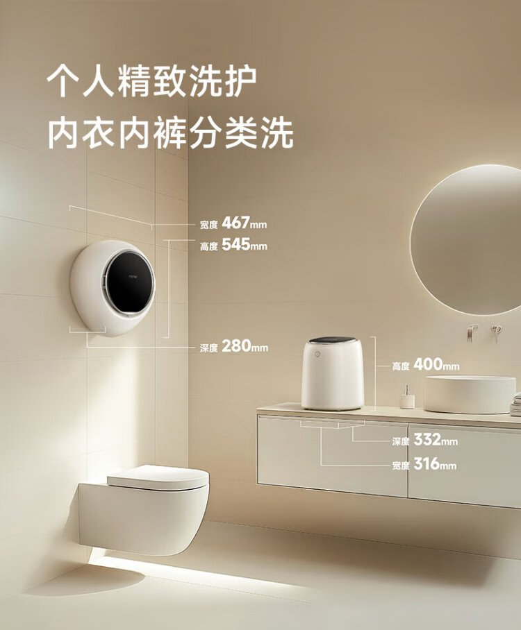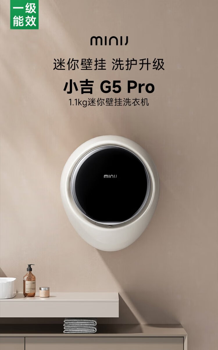 MINIJ Xiaoshuidi Wall-mounted Washing Machine 1.1kg Mini Underwear Washing Machine First-Class Energy Efficiency Maternal and Infant Certification G5-XMB Pro