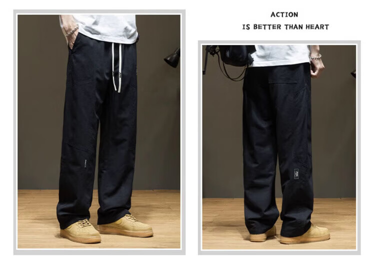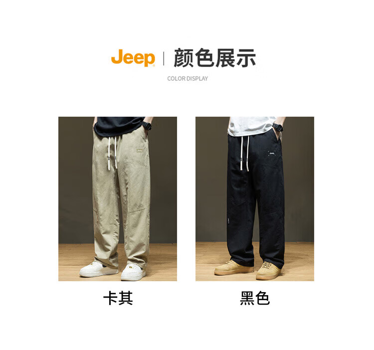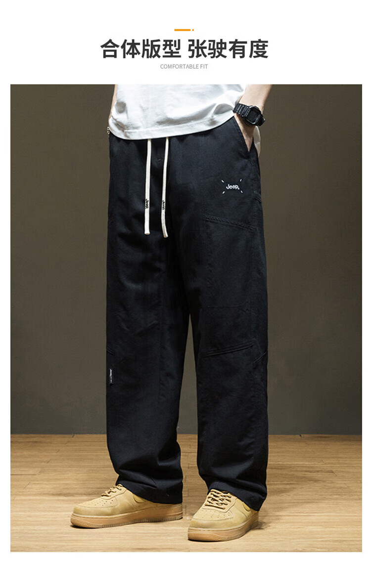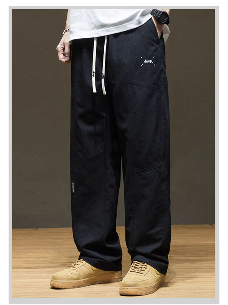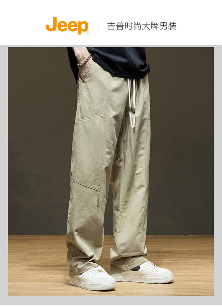 JEEP Casual Pants Men's Autumn and Winter Pure Cotton Trendy Loose Straight Pants Men's Versatile Sports Men's Pants Khaki 2XL