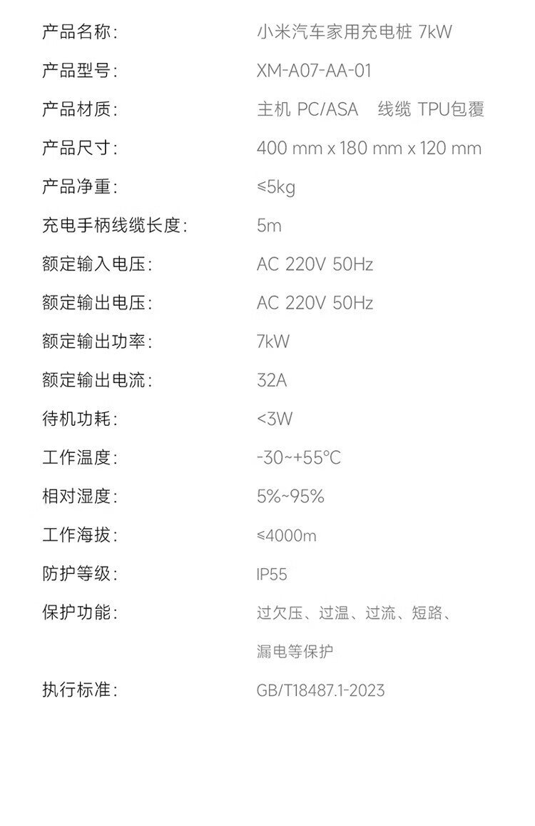 Xiaomi Xiaomi Home 7kW Charging Pile Service Pack (0m Installation) Xiaomi Car SU7 Original New Upgraded Version Compatible with Mijia appyu7