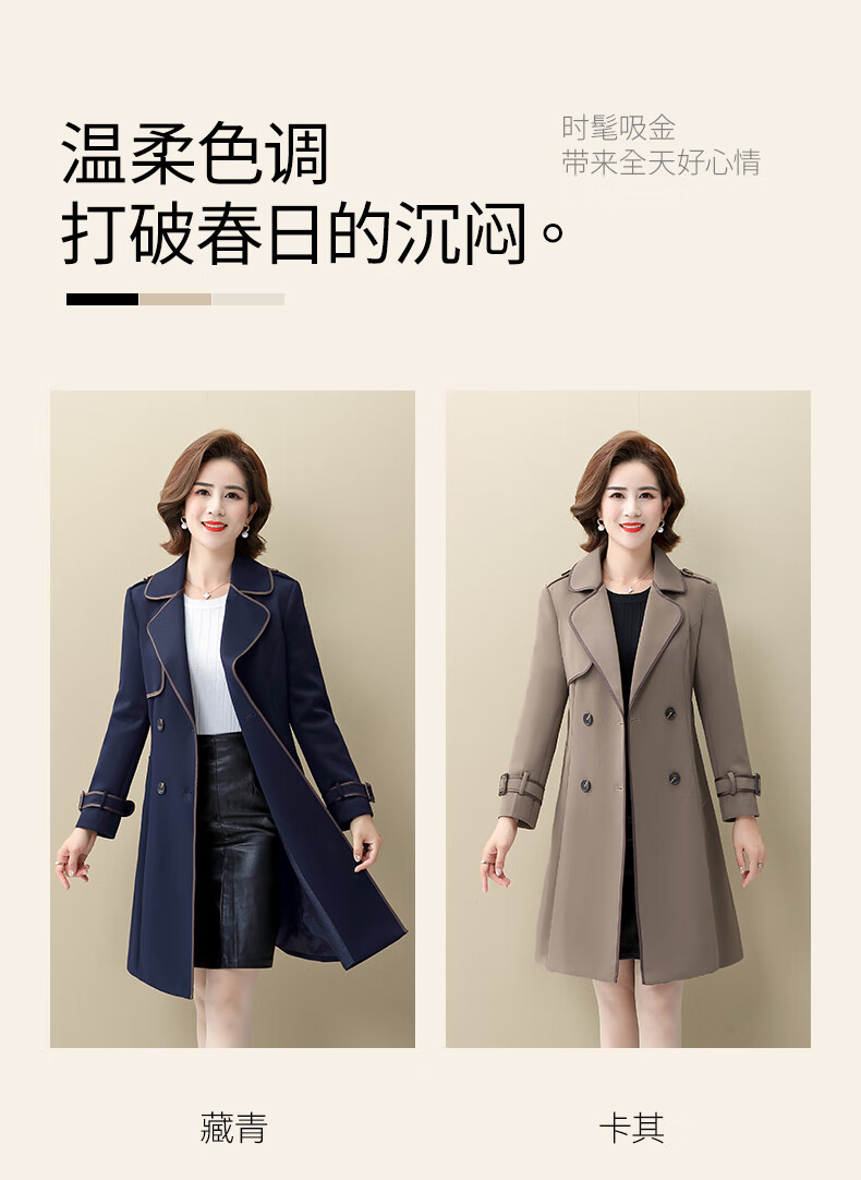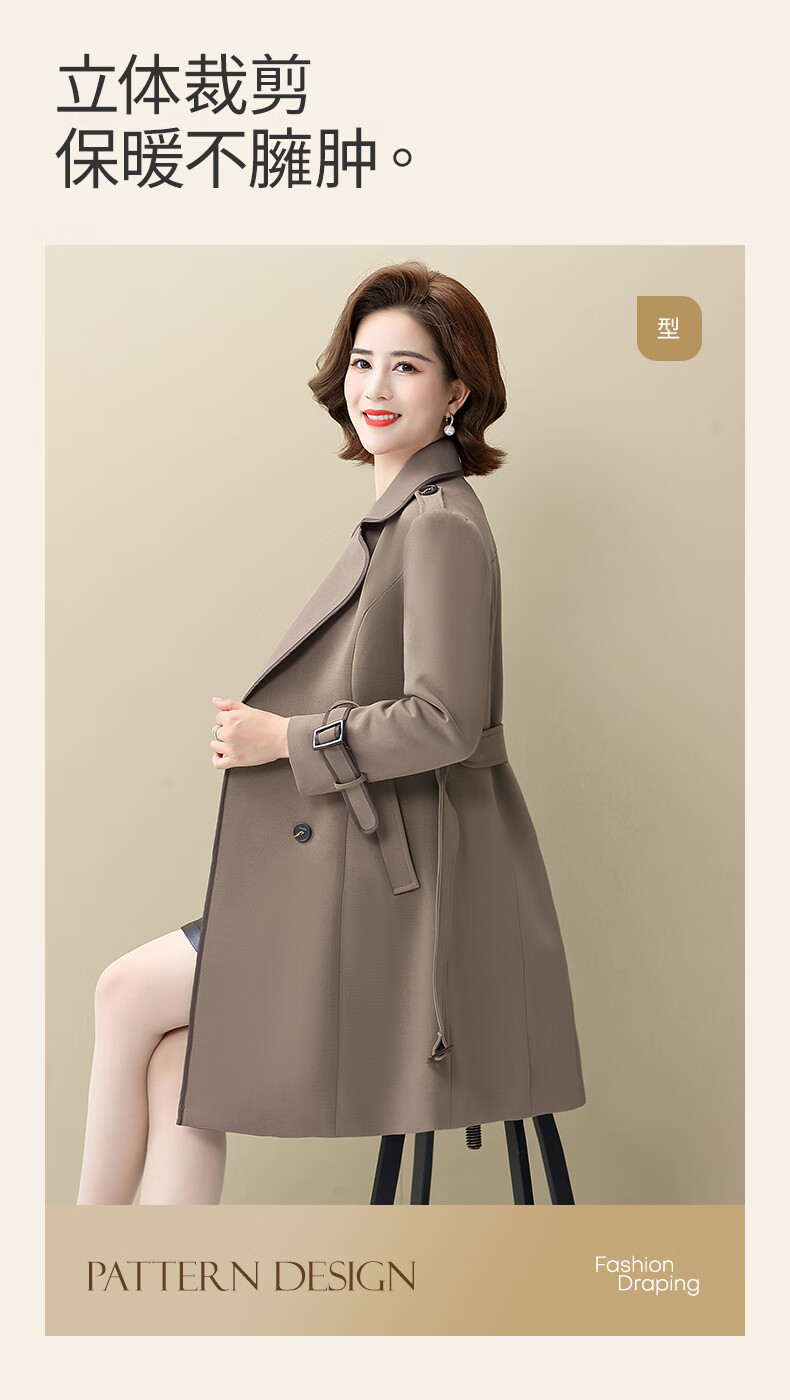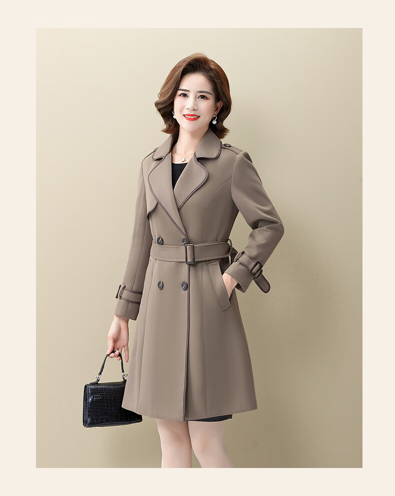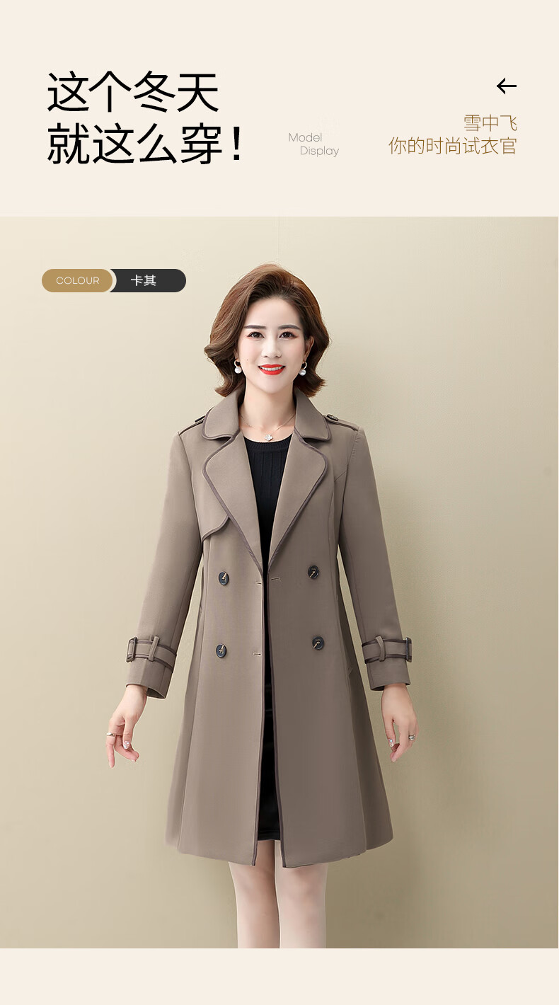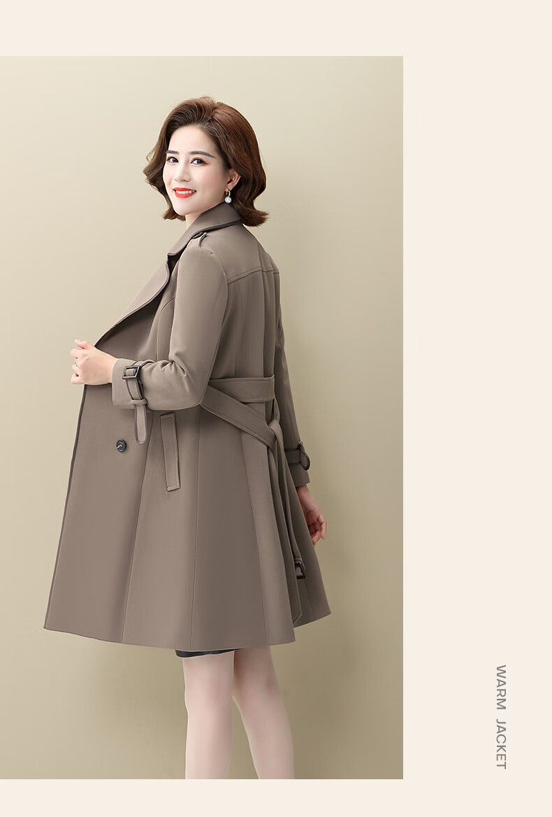 Snow Flying Ladies Spring and Autumn Daily Casual Lapel Lace-Up Windbreaker Jacket Women Khaki 2XL (175)