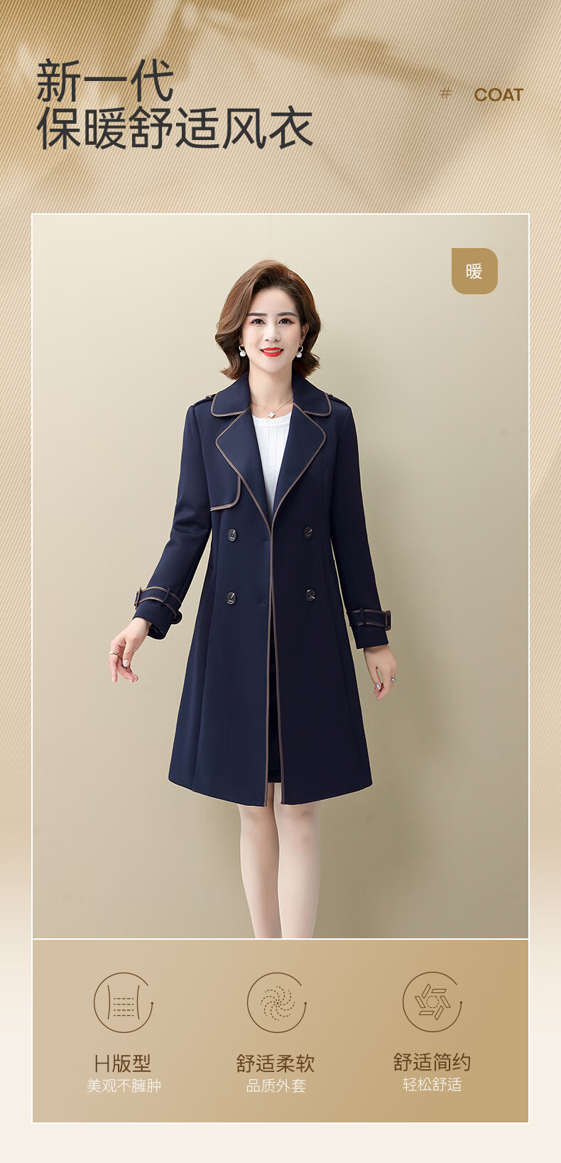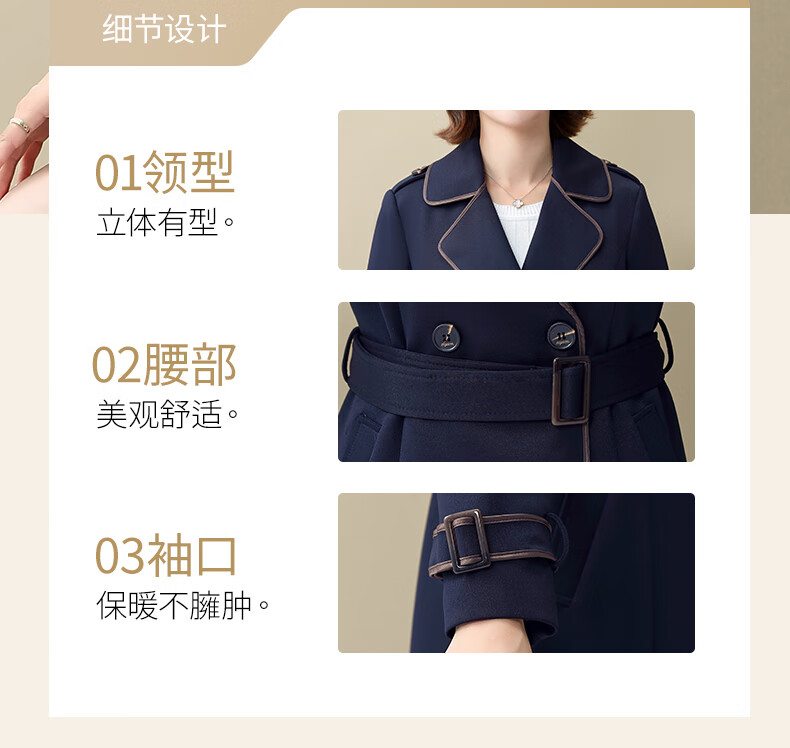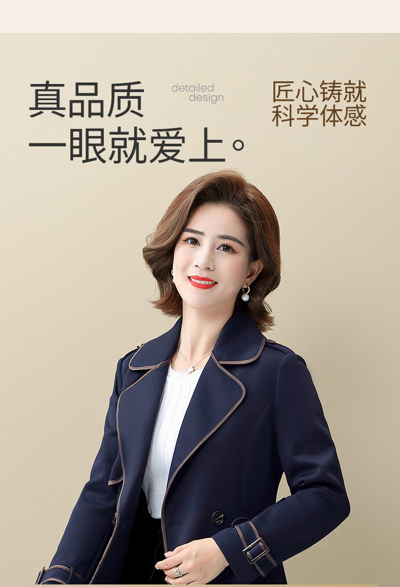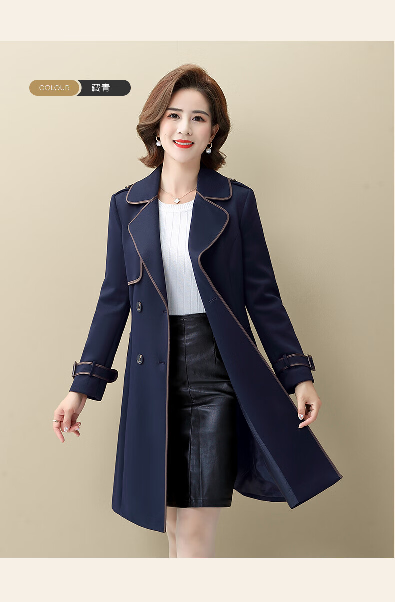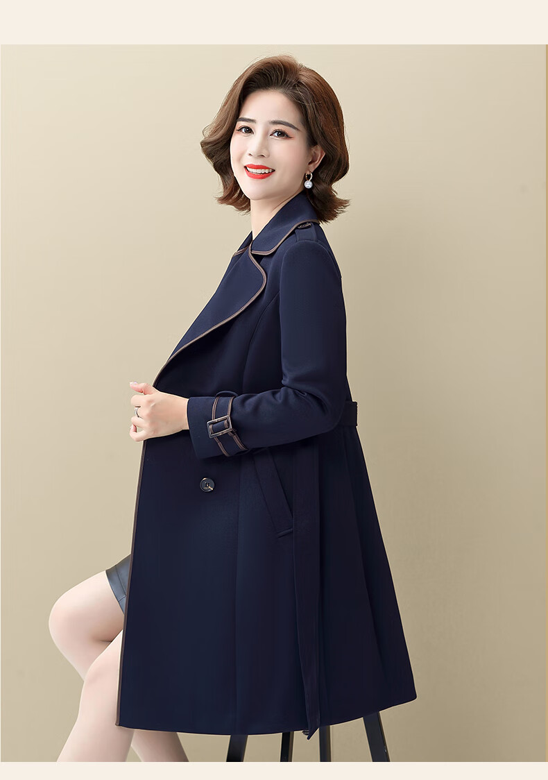 Snow Flying Ladies Spring and Autumn Daily Casual Lapel Lace-Up Windbreaker Jacket Women Khaki 2XL (175)