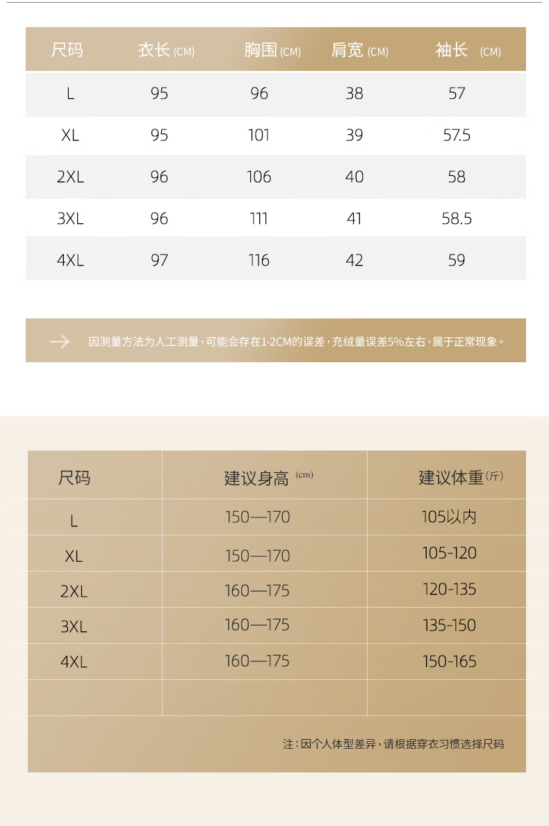 Size (cm) 42 44 46 48 50