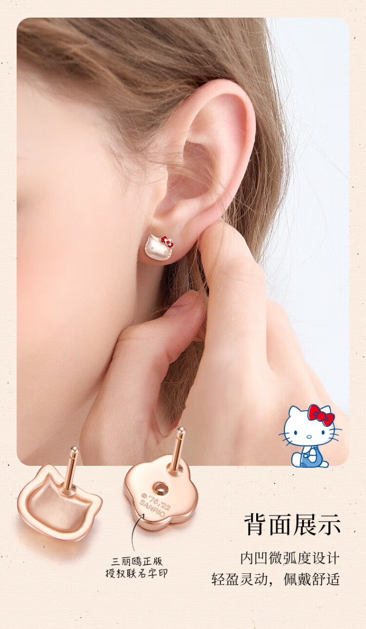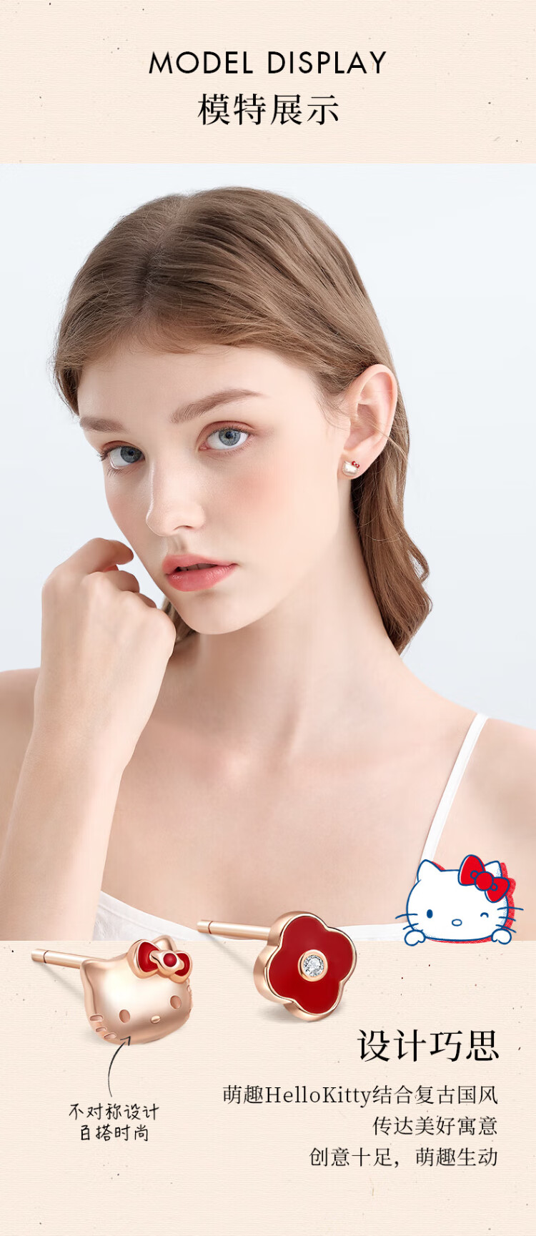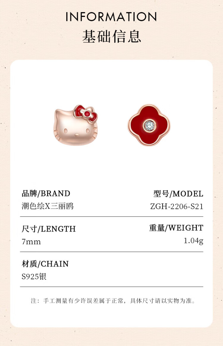 Trendy painted hellokitty earrings for women, silver four-leaf clover earrings, girls' birthday gifts for girlfriends 2206