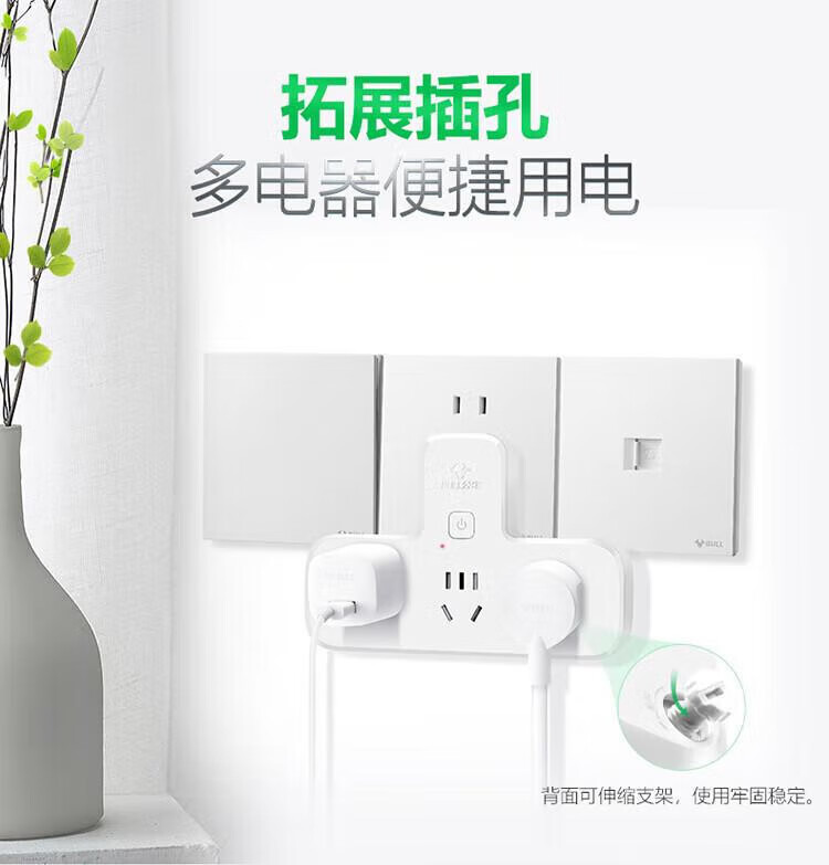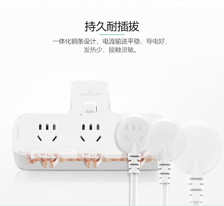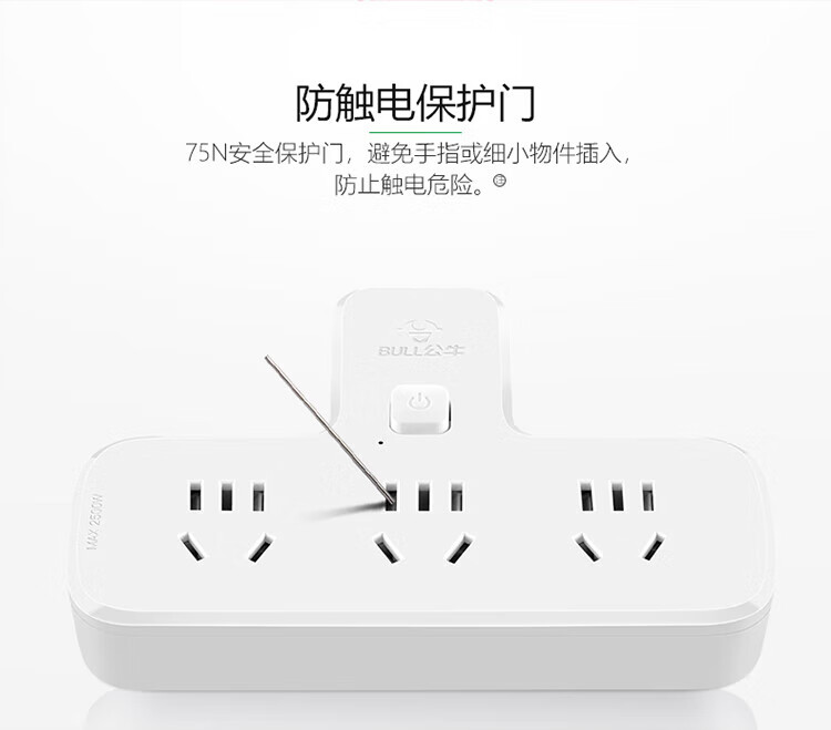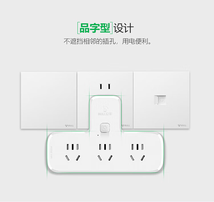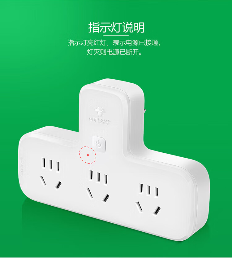 公牛(BULL)转换插头/品字形一转三插座/转换插座/电源转换器 适用于卧室、厨房 3位总控开关 GN-9603K白色