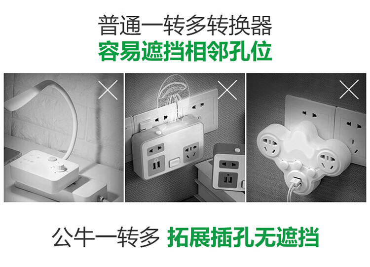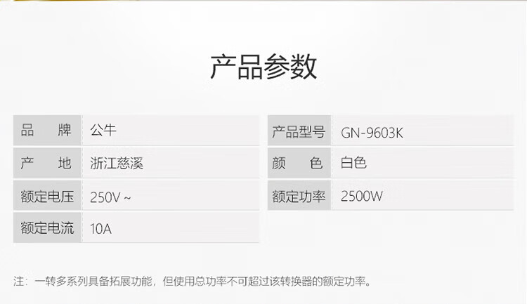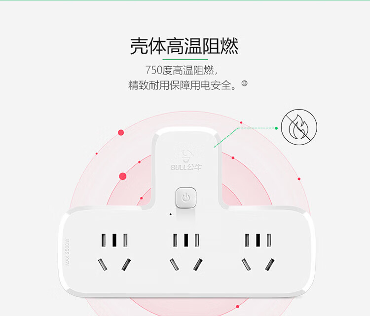 公牛(BULL)转换插头/品字形一转三插座/转换插座/电源转换器 适用于卧室、厨房 3位总控开关  GN-9603K白色