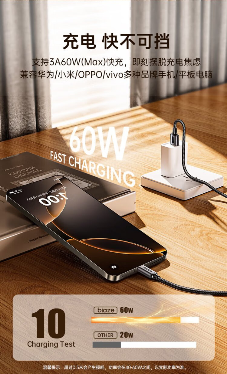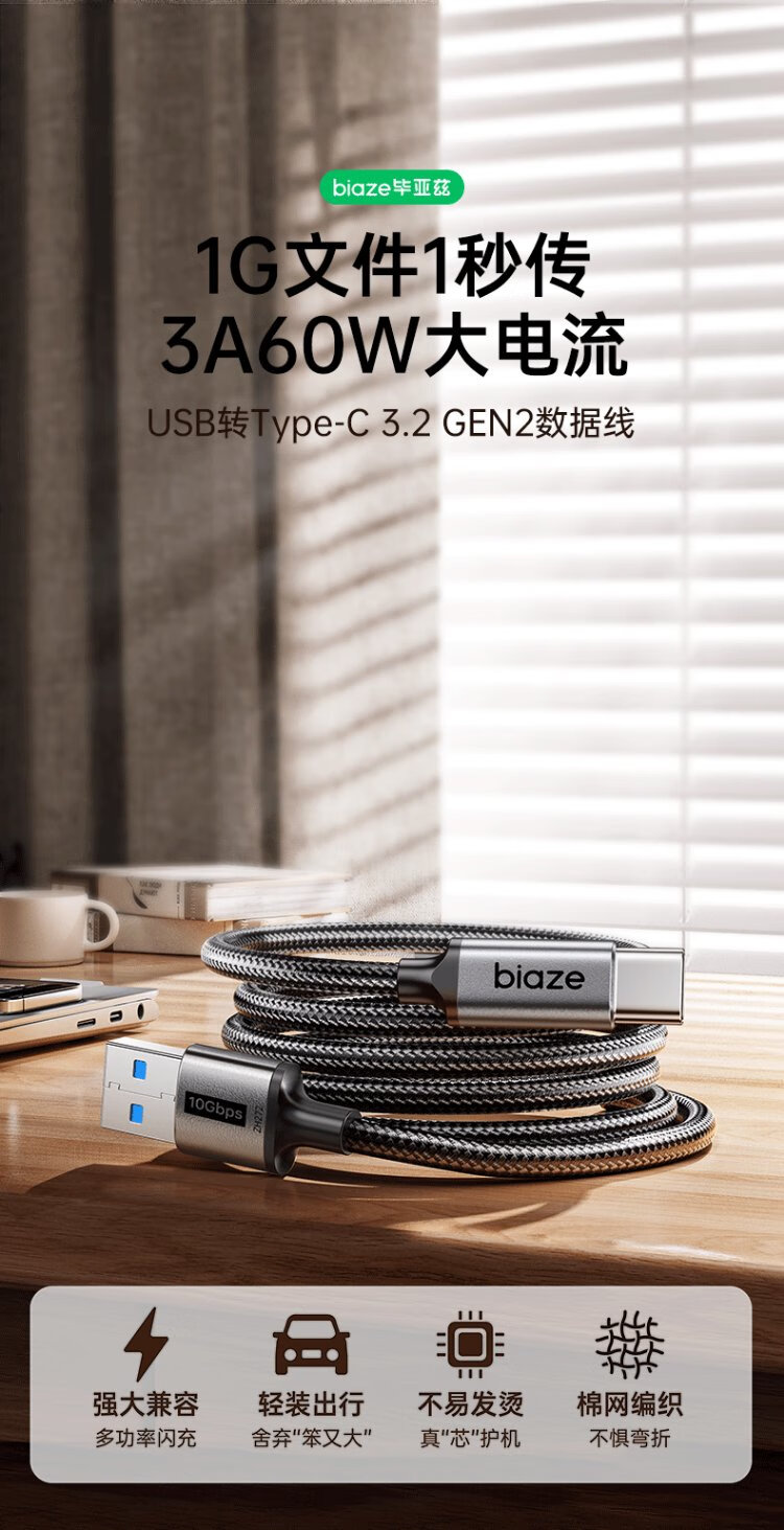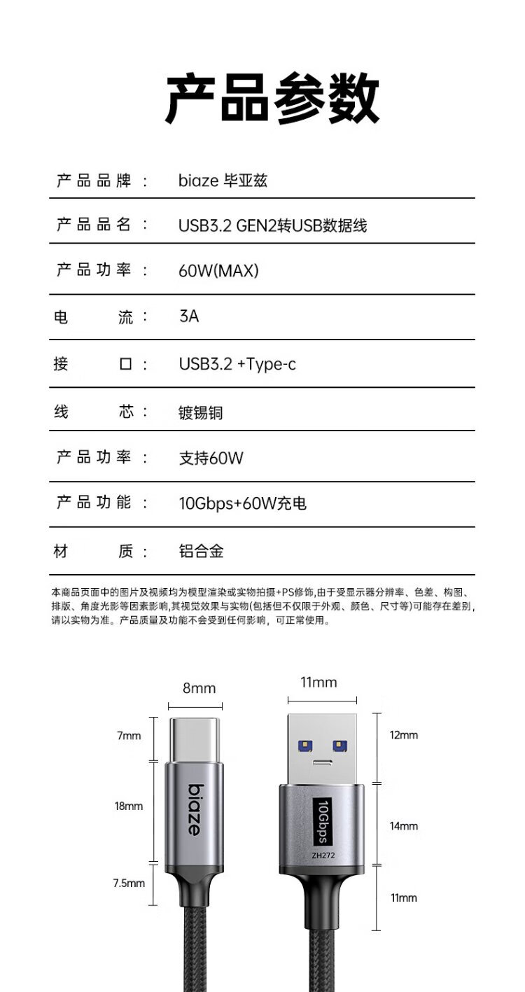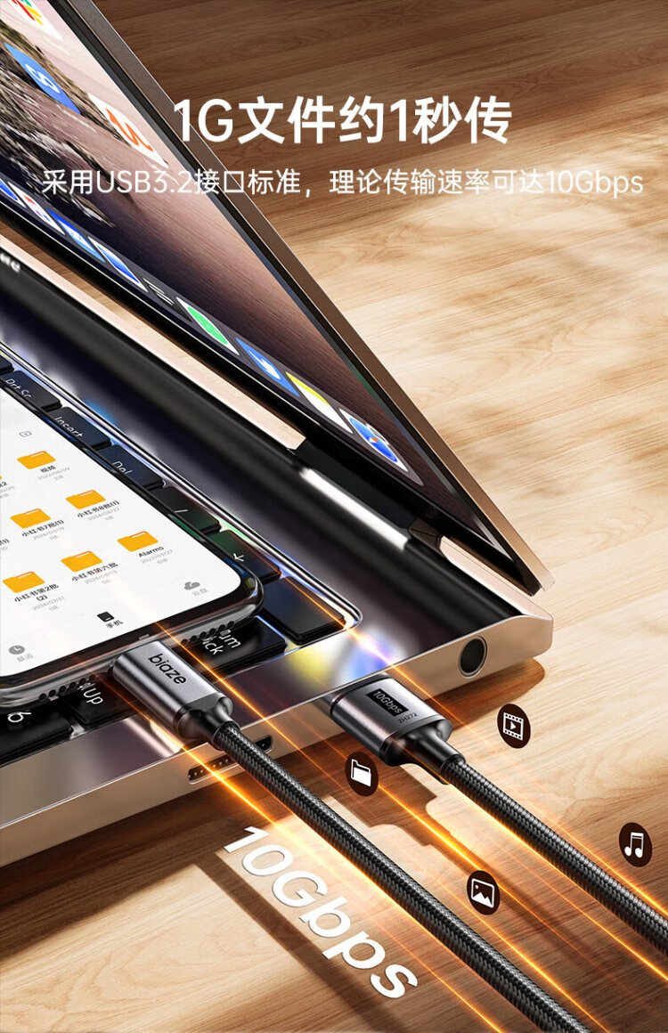 Biaz Type-C data cable USB3.2 to Type-C 10Gbps GEN2 hard drive box connection supports 60W fast charging, supports all iPhone15 series, 0.2 meters