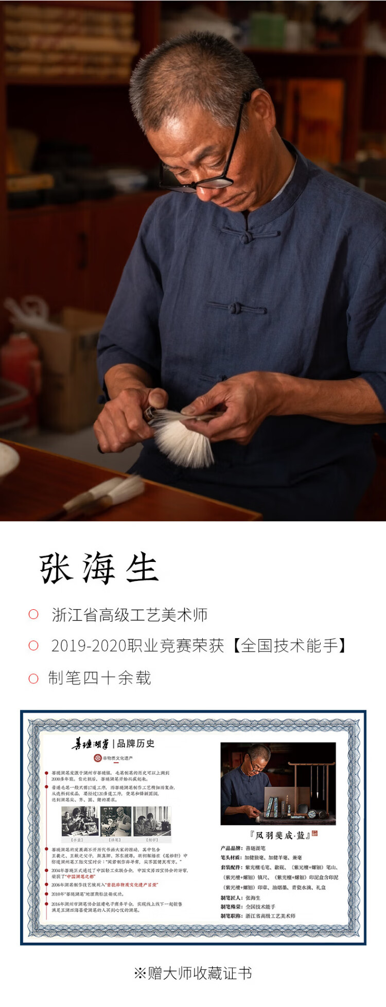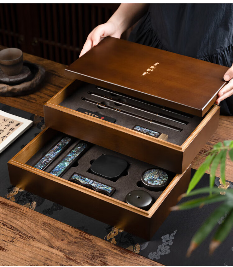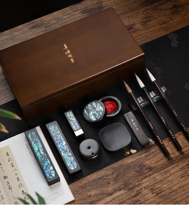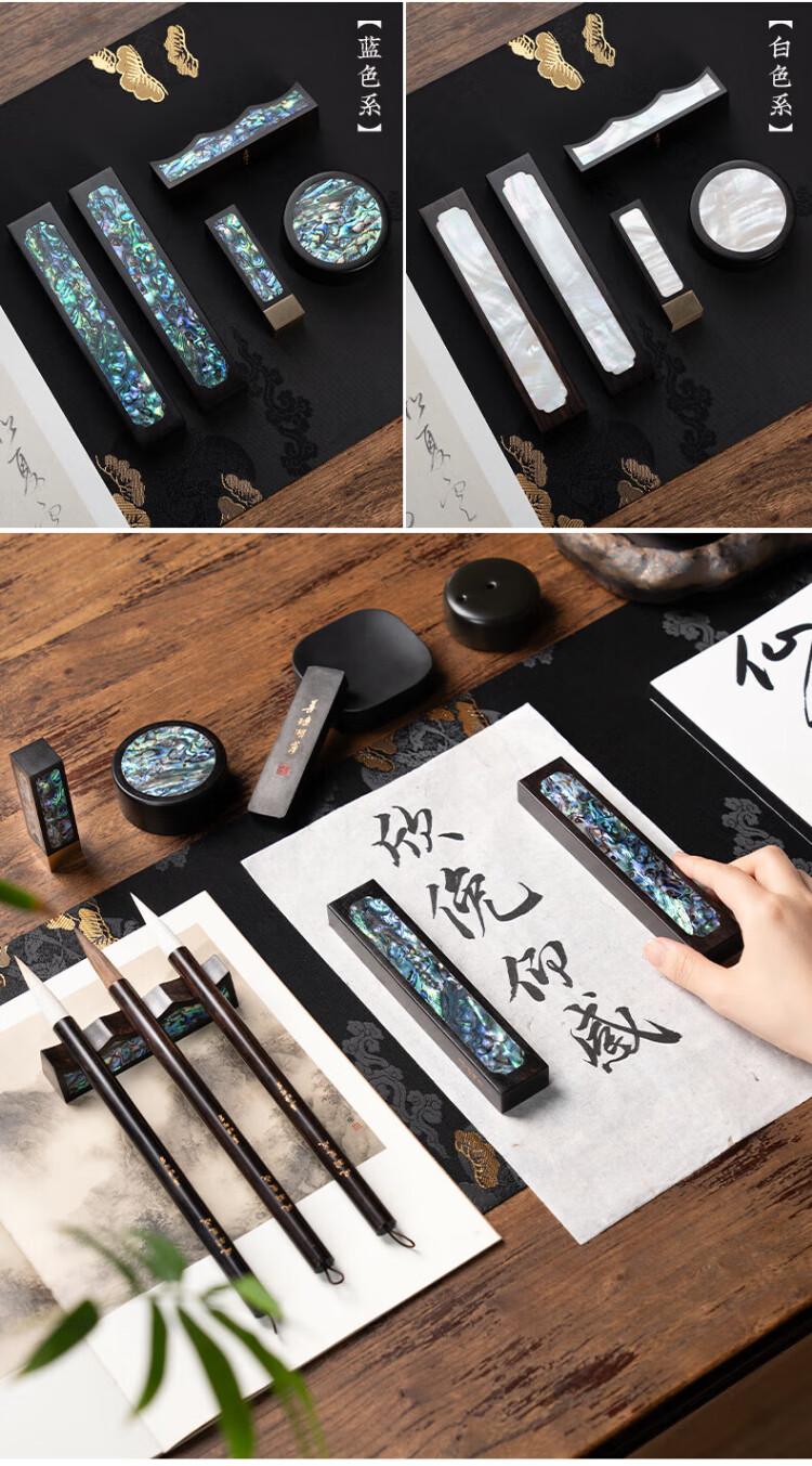 Shanlianhu Pen Fengyu Feicheng Blue Four Treasures of the Study Set Master Handmade High-end Brush Set Pen, Ink, Paper and Inkstone High-end Calligraphy Inkstone Table Ink Strip She Inkstone Pen Holder Great Gift