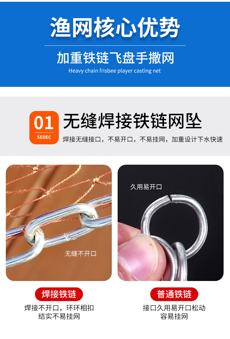 Let the birds fly hand-thrown nets, iron chains, American-style easy-throw fishing nets, fishing nets, spinning nets, fish tire lines, flying discs 3.0 meters