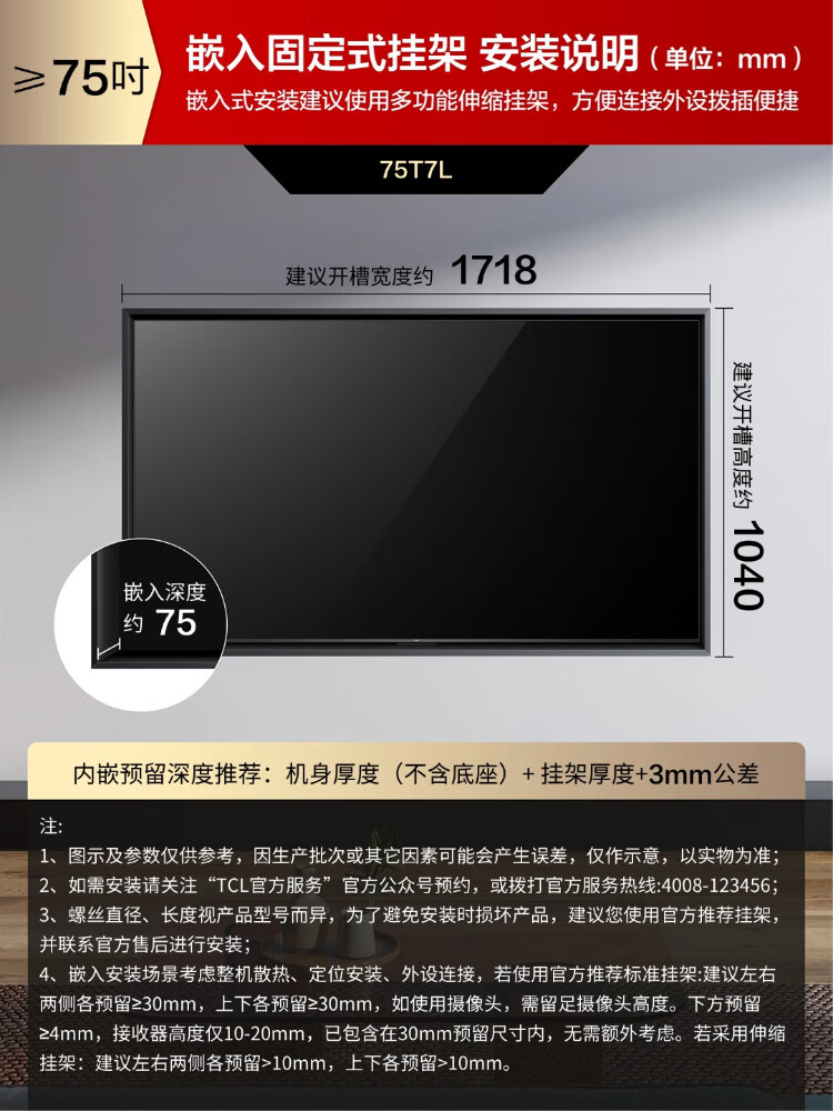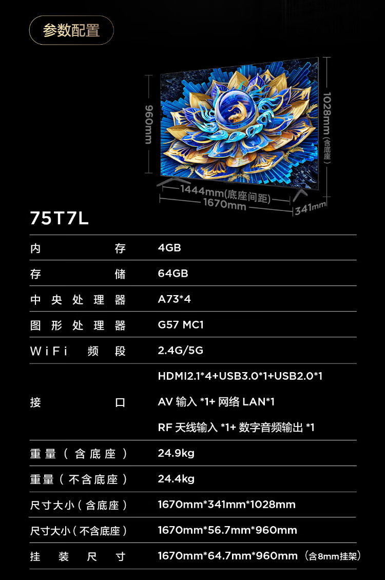 TCL TV 75T7L 75-inch QD-Mini LED Huaxing high-end HVA screen Vientiane partition colorful XDR2200nits ultra-thin national subsidy
