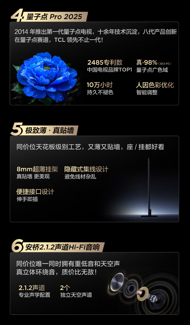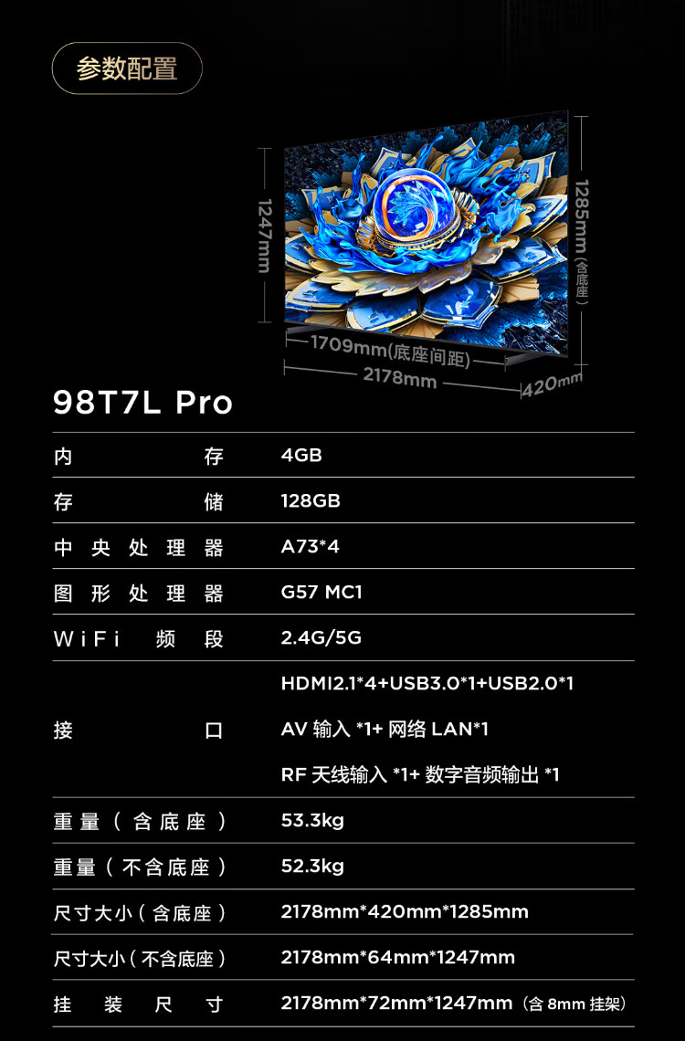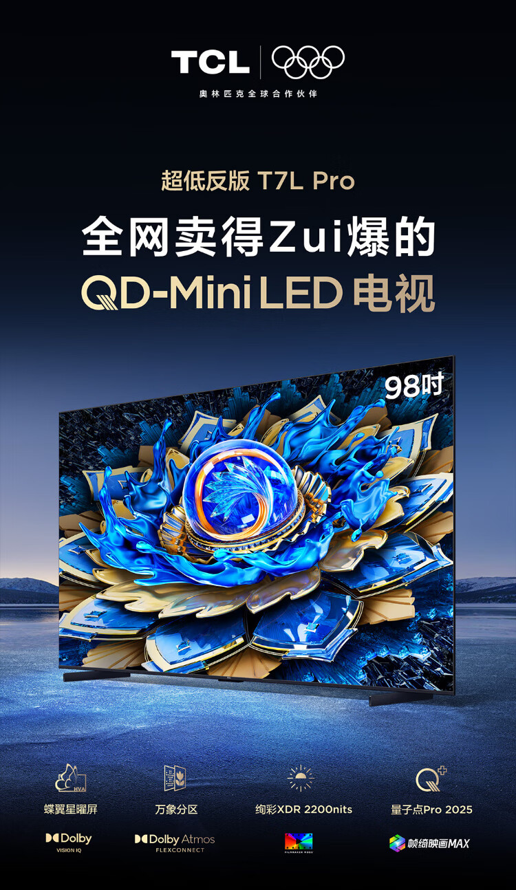 TCL TV 98T7L Pro 98-inch QD-Mini LED Butterfly Star Screen Vientiane Partition Colorful XDR Ultra-thin 98/100-inch TV National Subsidy
