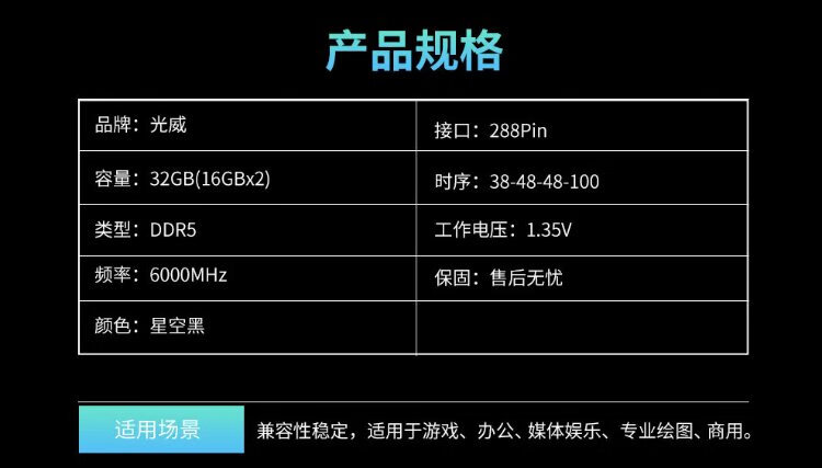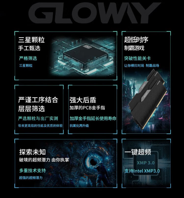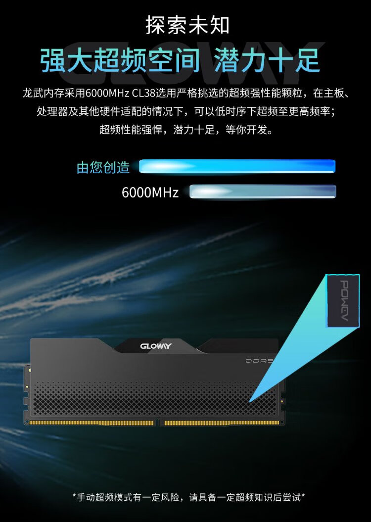 Gloway 32GB (16GBX2) DDR5 6000 Desktop Memory Longwu Vest Strip Samsung Granule CL38 Starry Sky Black