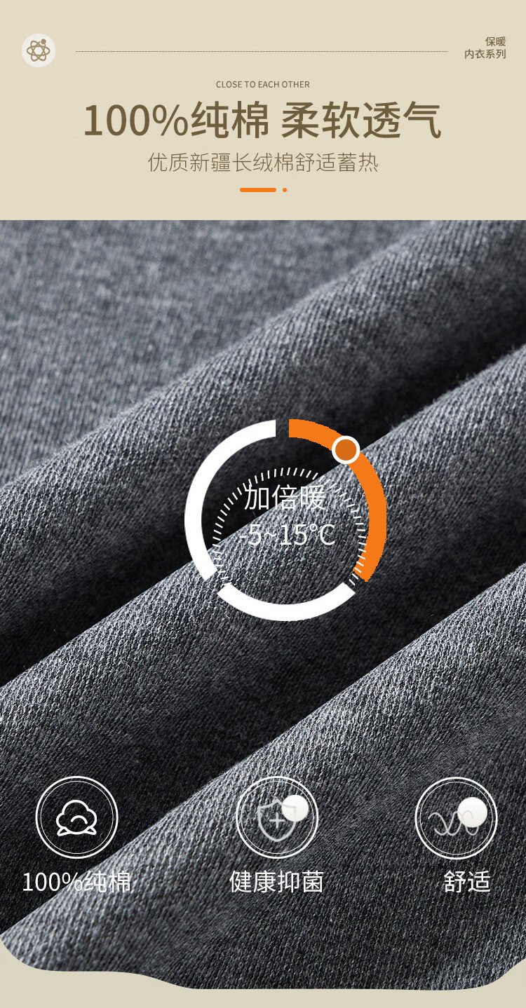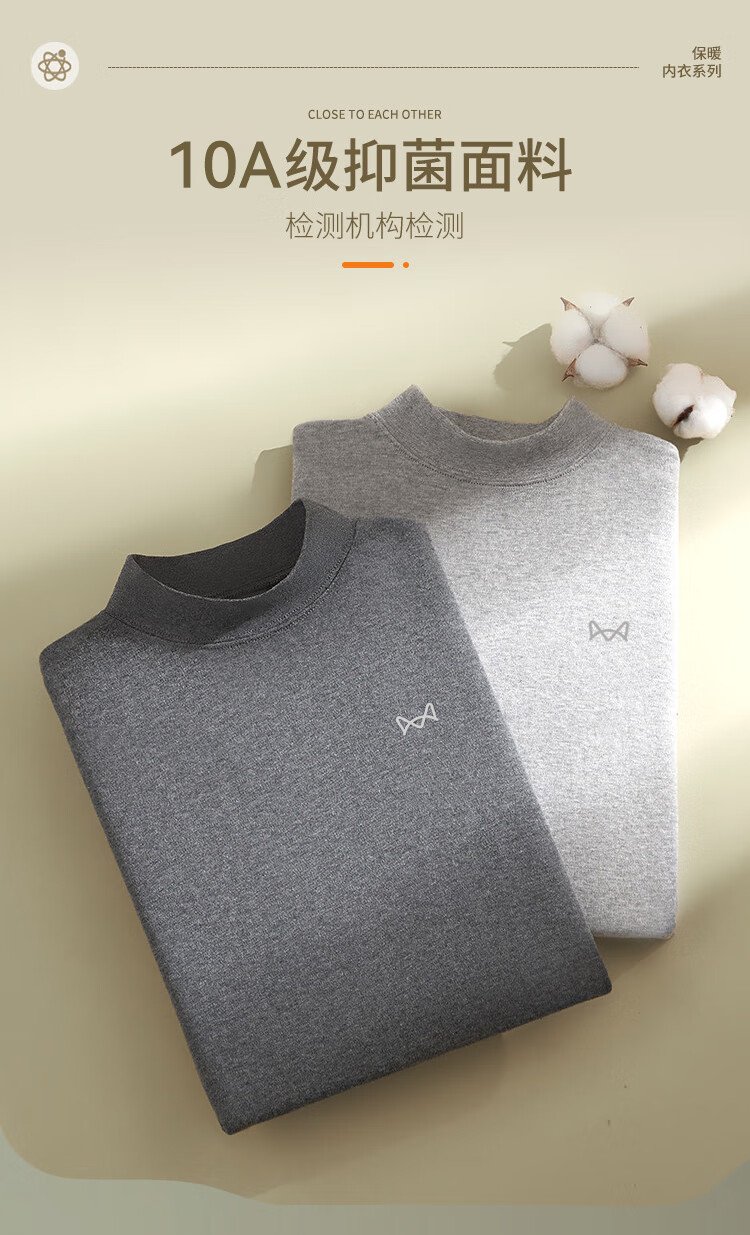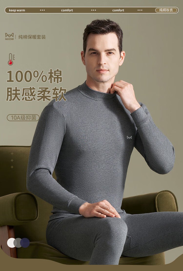 MiiOW 100% cotton autumn coat and long johns men's suit thin mid-collar antibacterial cotton sweater middle-aged and elderly thermal underwear