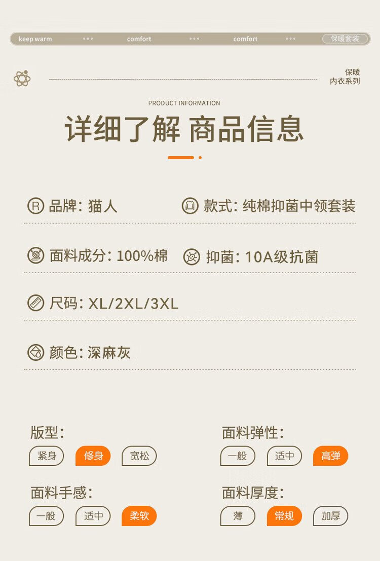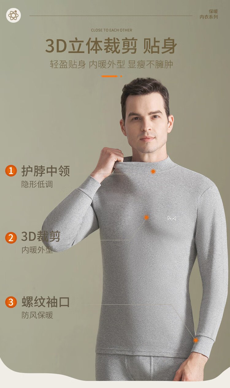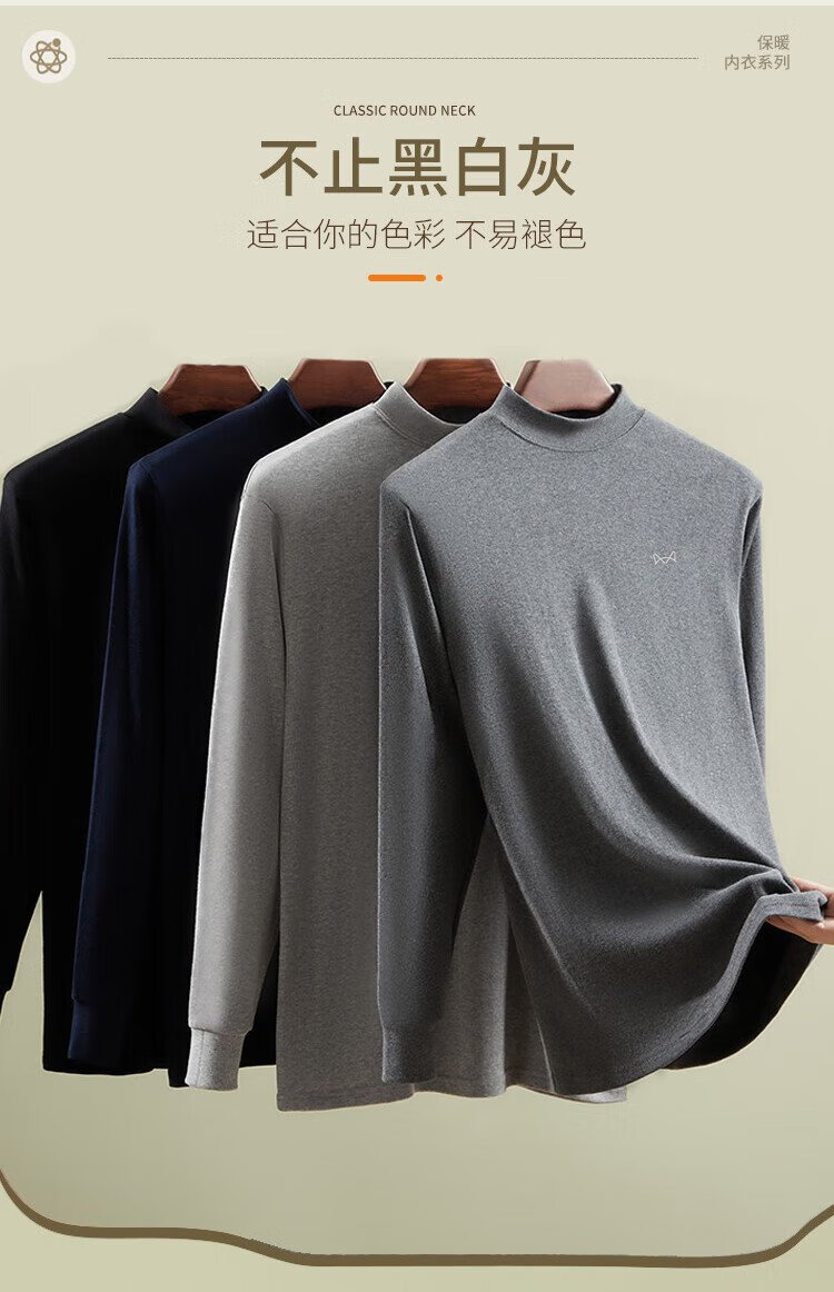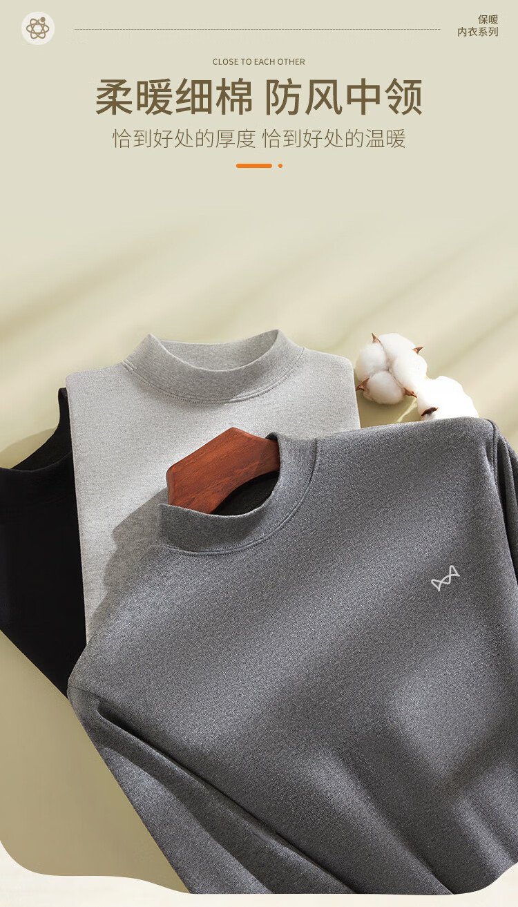 MiiOW 100% cotton autumn coat and long johns men's suit thin mid-collar antibacterial cotton sweater middle-aged and elderly thermal underwear