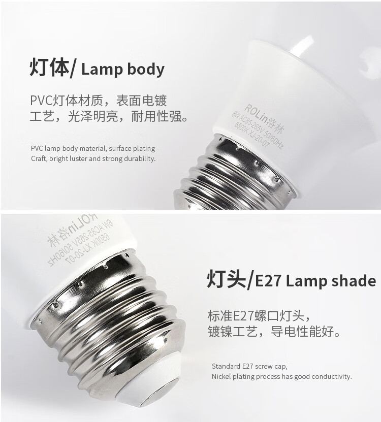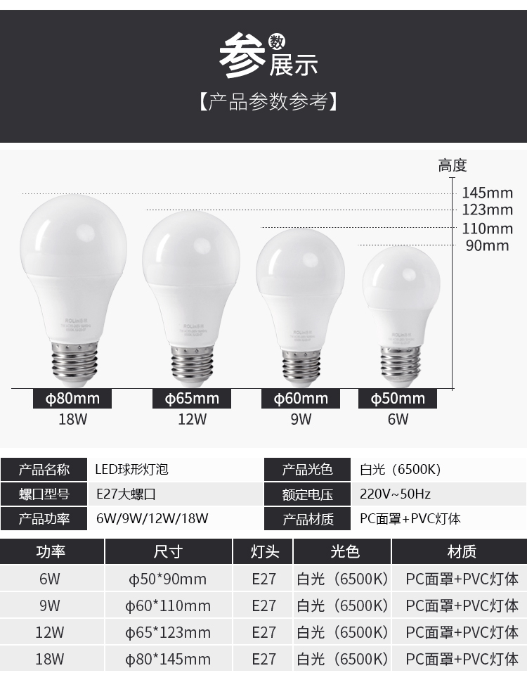 Lorraine (ROLin) LED light bulb energy-saving lamp E27 screw commercial light source bulb 9W white light