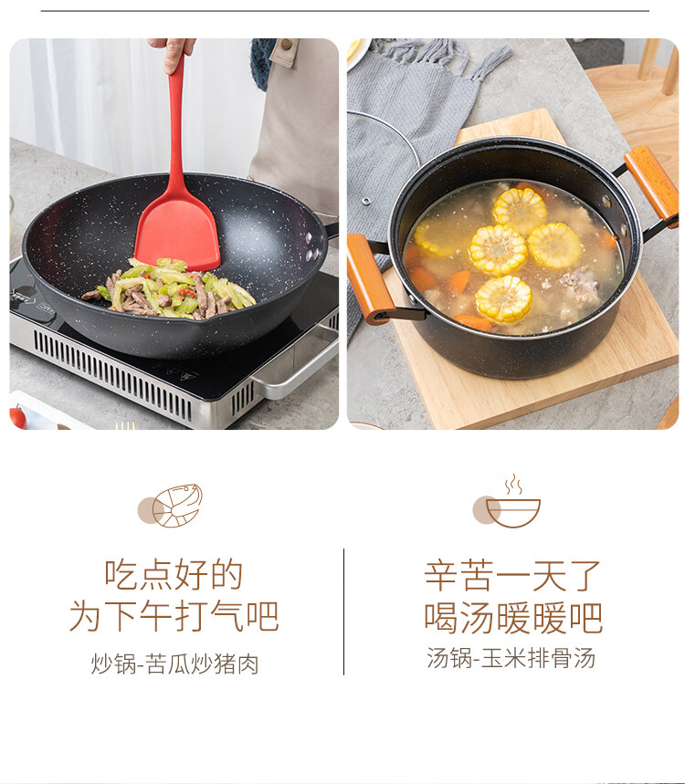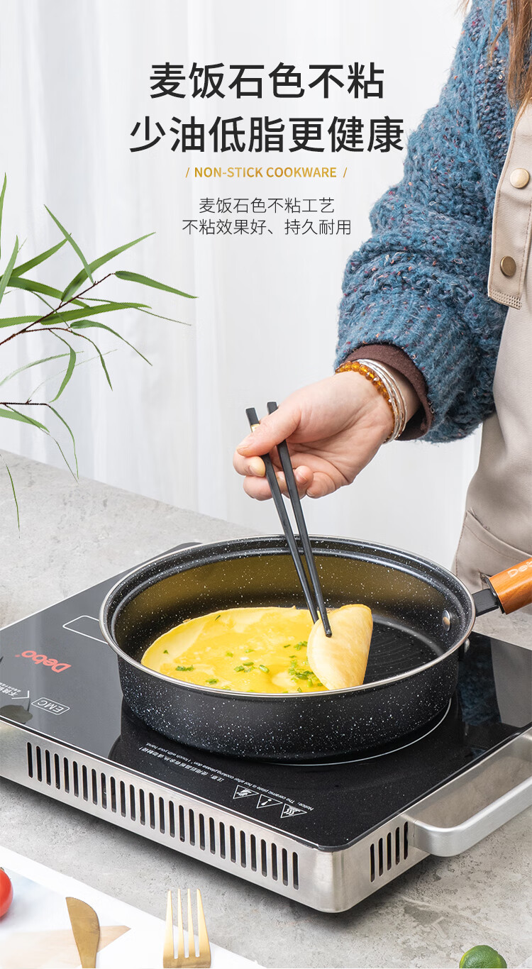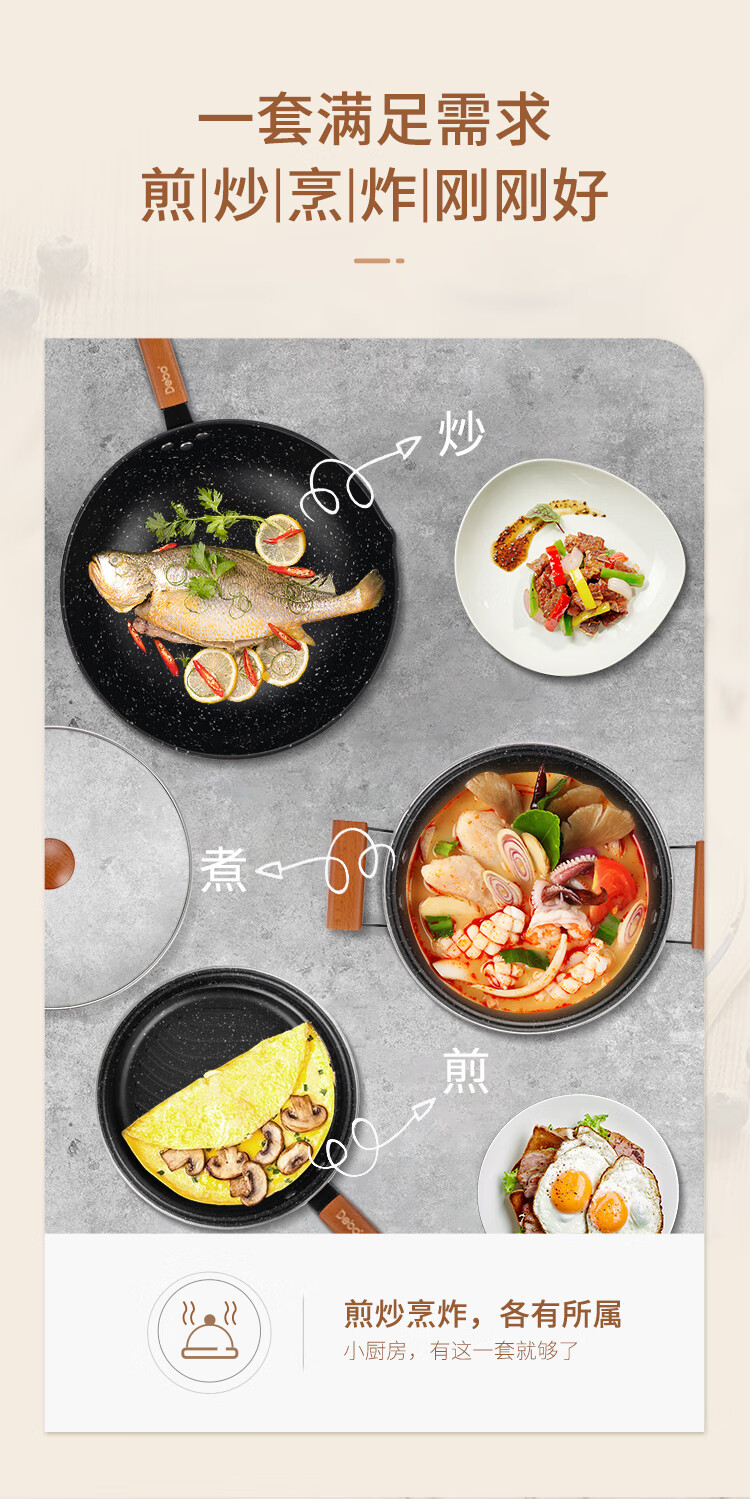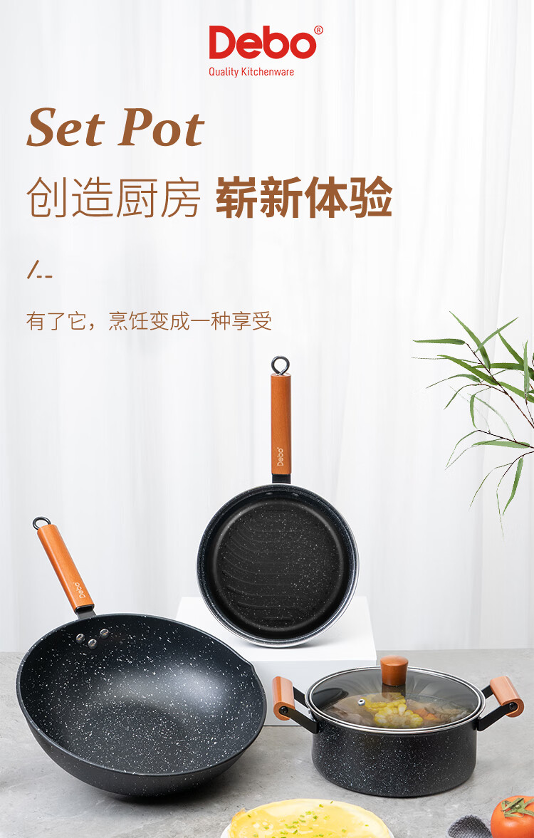 Debo Debo pot set Maifan stone color fine iron wok frying pan soup pot three-piece set DEP-DZ329