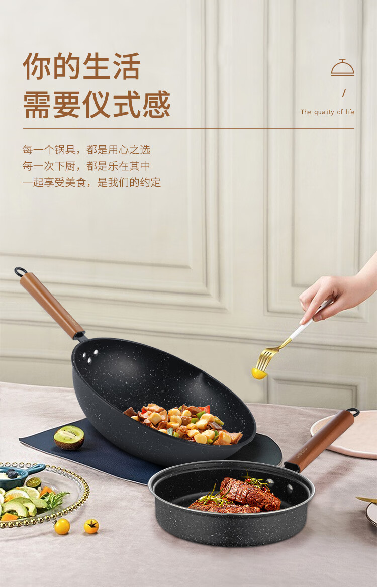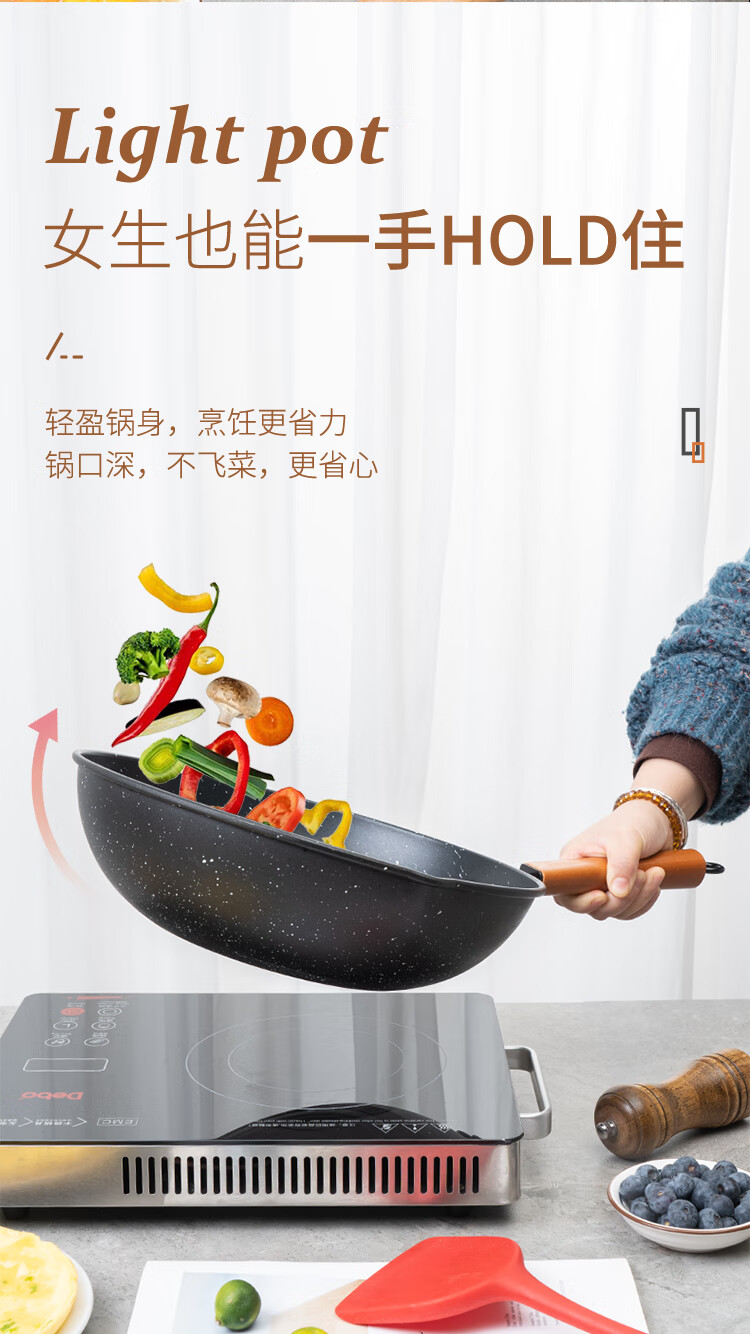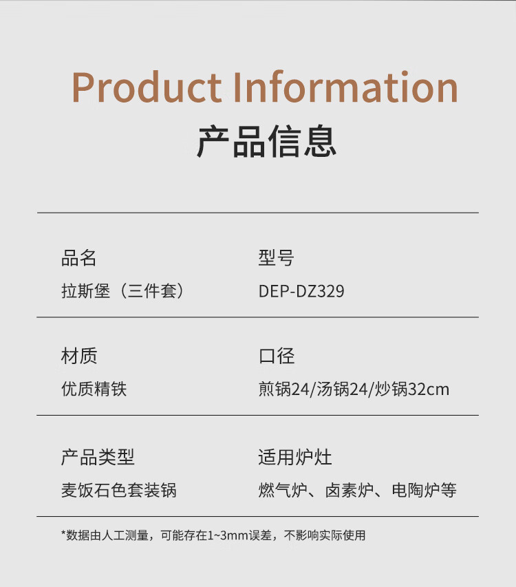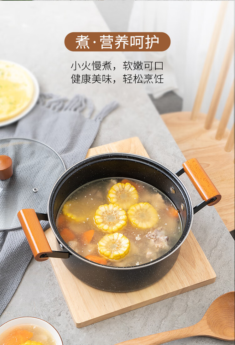 Debo Debo pot set Maifan stone color fine iron wok frying pan soup pot three-piece set DEP-DZ329