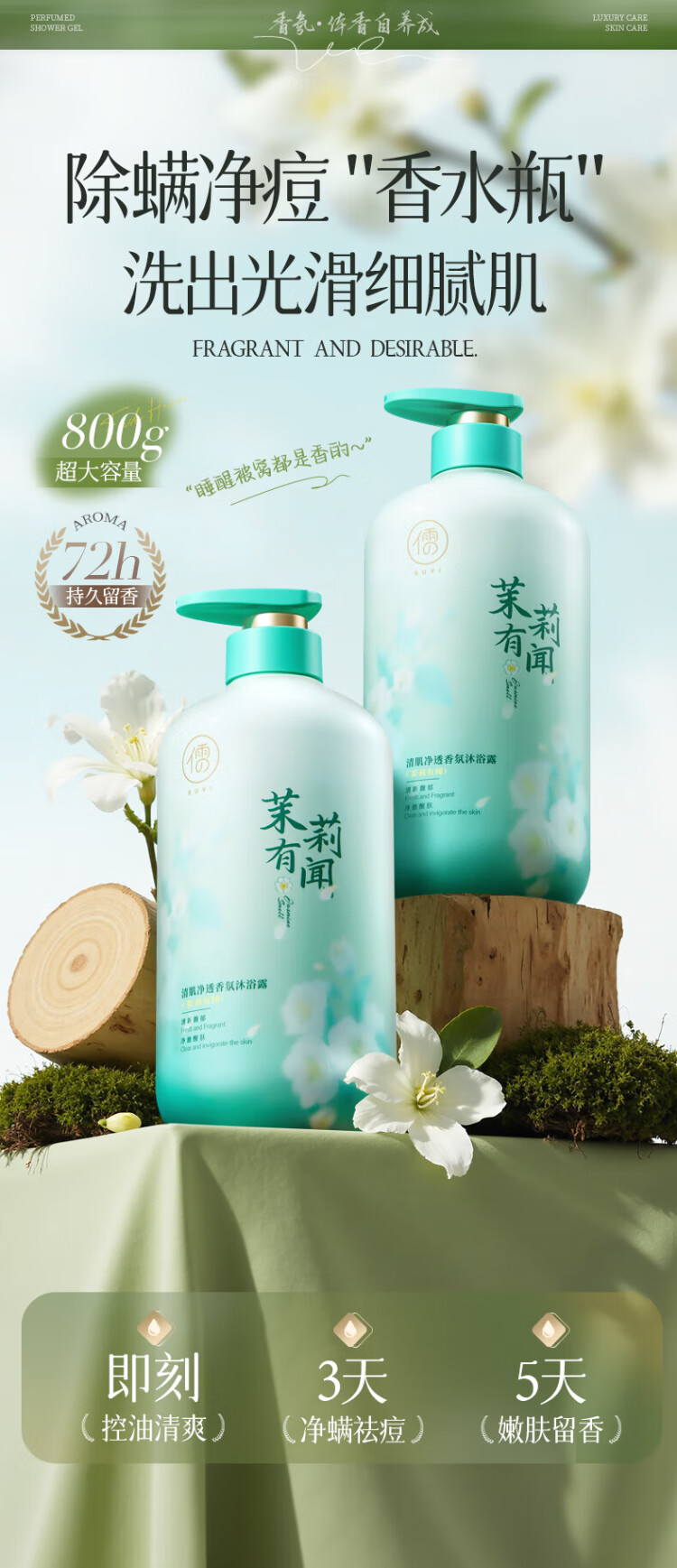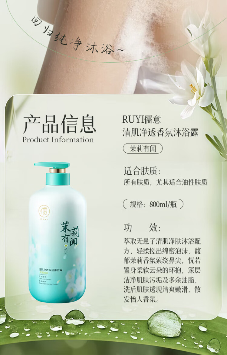 RUYI Fragrance Shower Gel 800g Men's and Women's Shower Gel Long-lasting Fragrance 72 Hours Body Moisturizing Moisturizing Men and Women