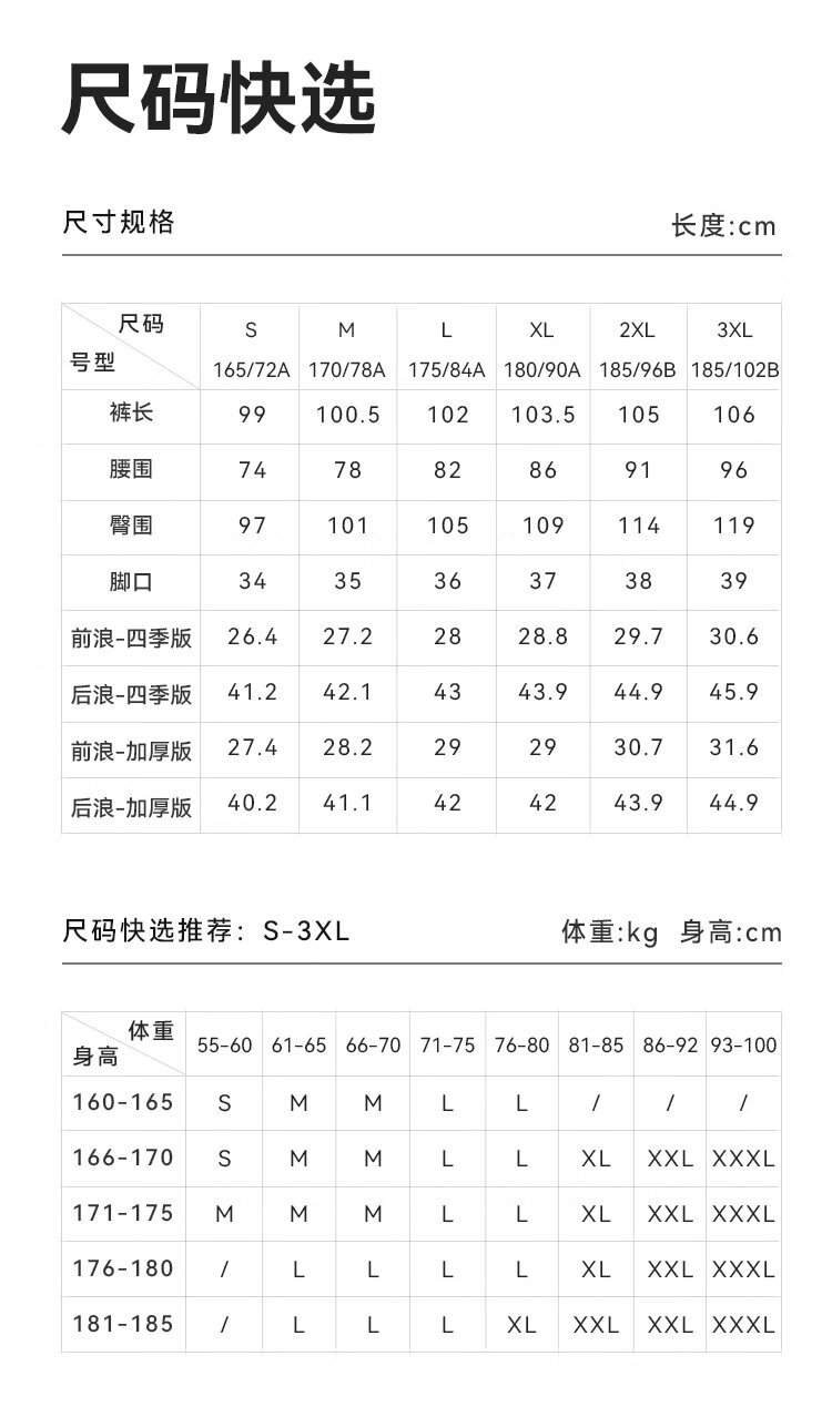 China (cm) 160-165/84-86 165-170 / 88-90 167-172 / 92-96 168-173 / 98-102 170-176 / 106-110