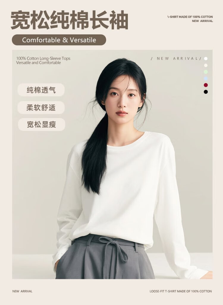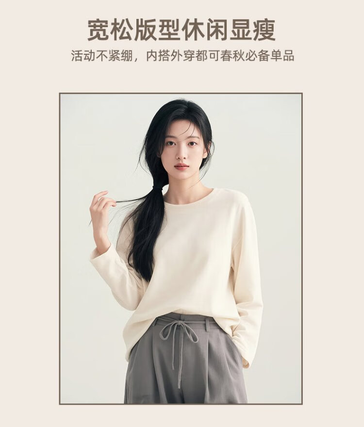 Baleno pure cotton long-sleeved women's 2025 new autumn inner layering shirt, age-reducing slimming, loose, casual and versatile top