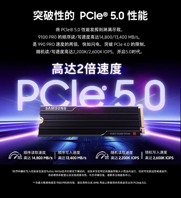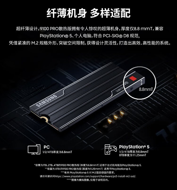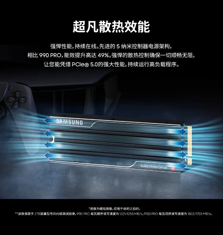 Samsung (SAMSUNG) 1TB SSD solid state drive M.2 interface (NVMe protocol PCIe 5.0 x4) 9100 PRO With Heatsink radiator version desktop PS5