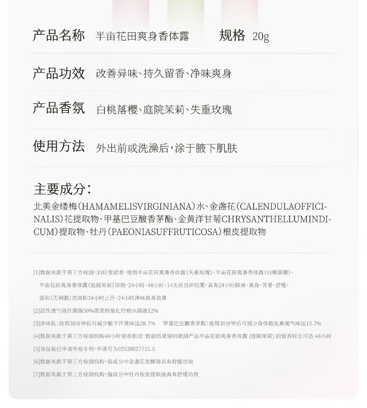 Half Acre Flower Field Refreshing Body Deodorant Roll-On Antiperspirant Lotion for Men and Women Underarm Dry Long-lasting Fragrance Deodorizing and Deodorizing Roll-On Roll-on Plaster Liquid 40g