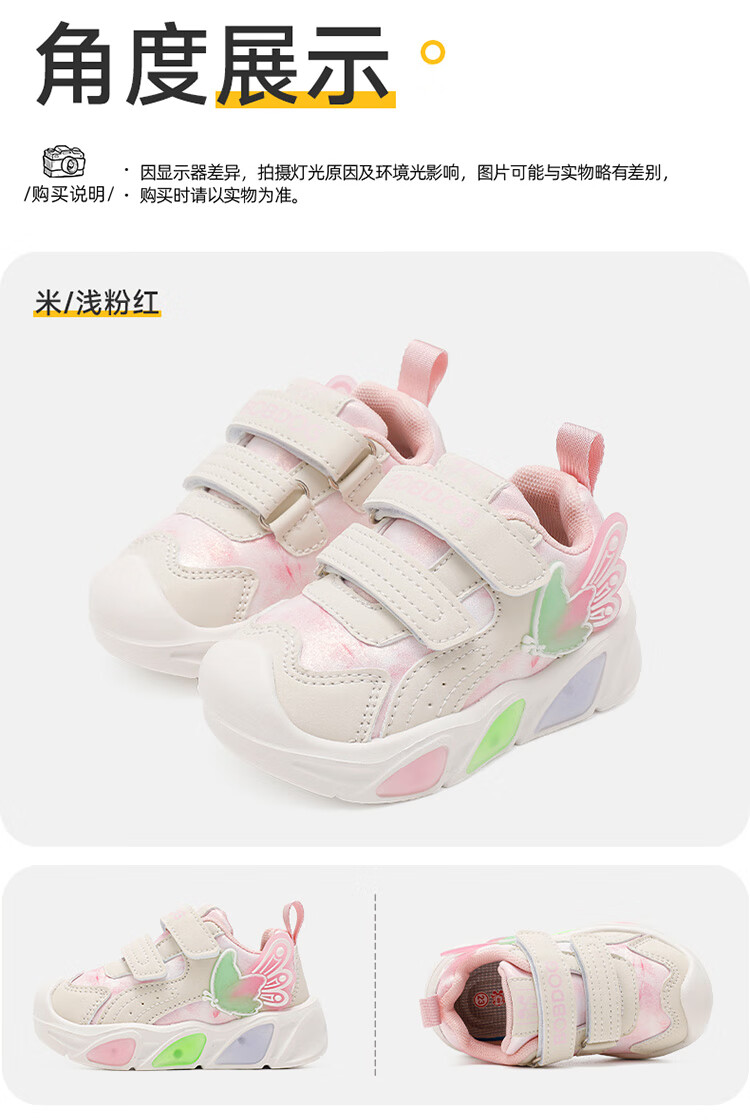 Babudou Children's Shoes Girls Soft Soled Lightweight Baby Shoes Autumn Versatile Children's Toddler Shoes 101353063m/Light Pink 24