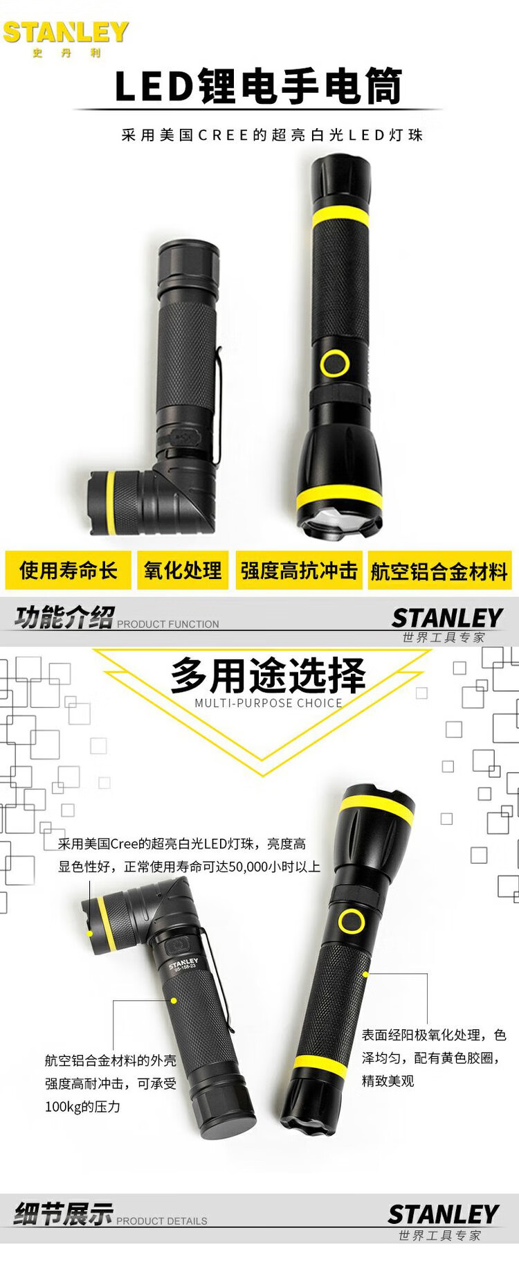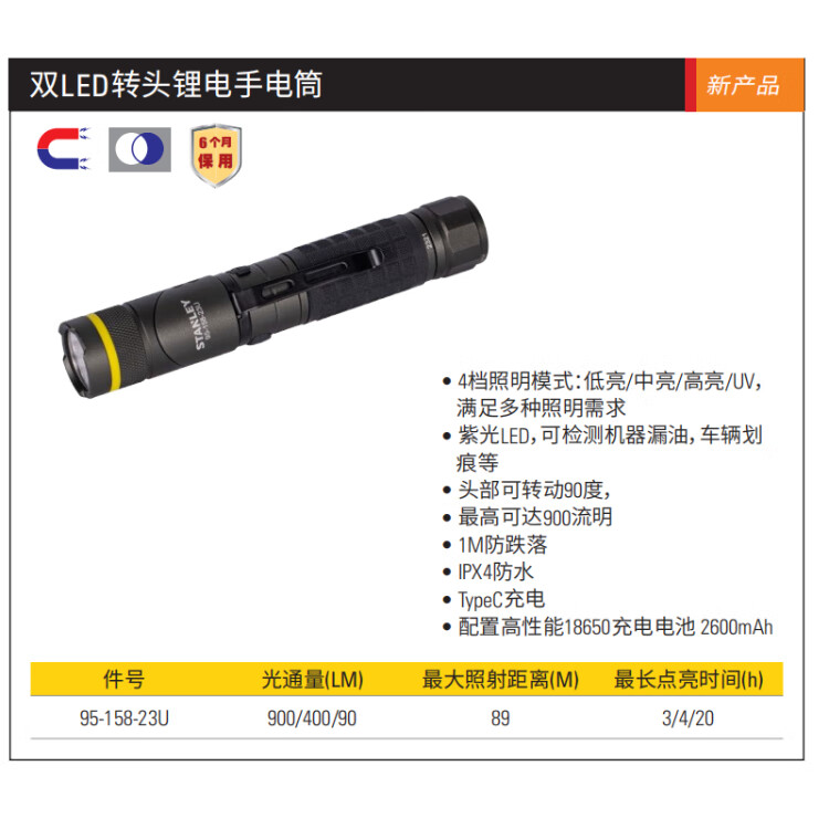 Stanley (STANLEY) household LED lithium-ion flashlight with rotatable angle dual LED turning head lithium-ion flashlight 95-158-23U
