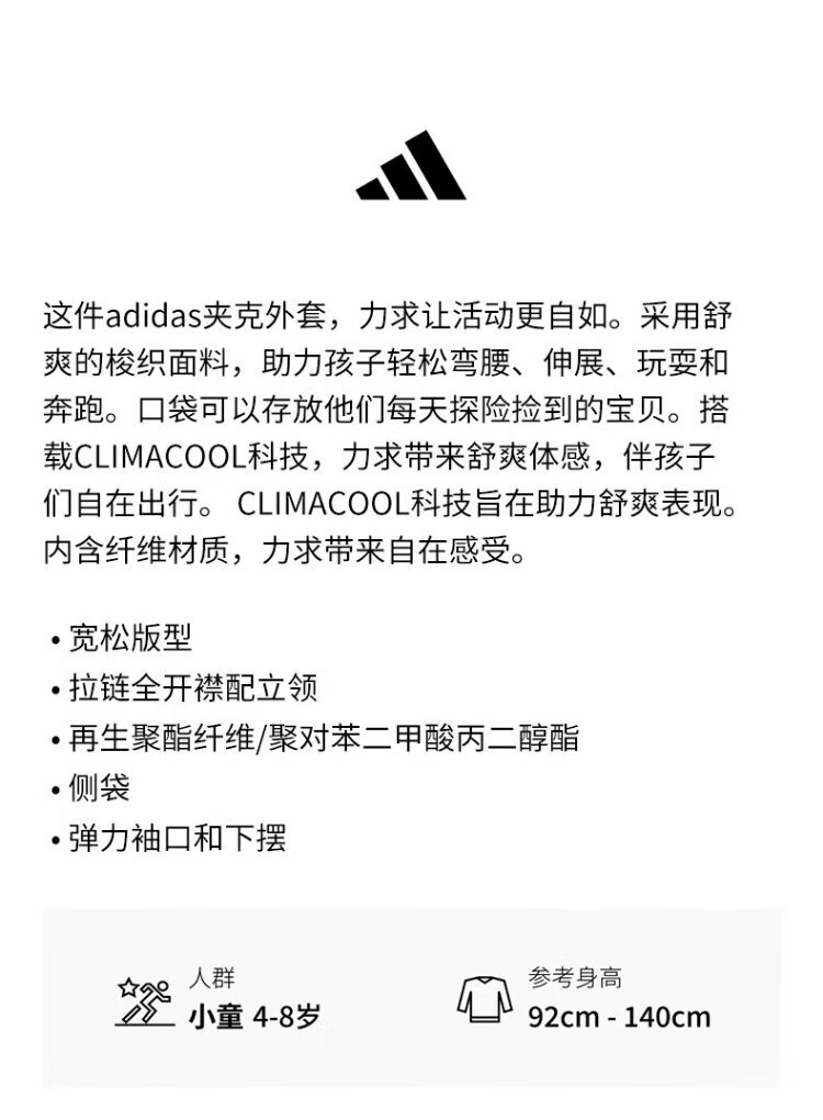Adidas Children's Clothing 25 Autumn Children's Woven Jacket Boys' Breeze Technology Comfortable and Quick-Drying Girls' Sports Jacket KF4954