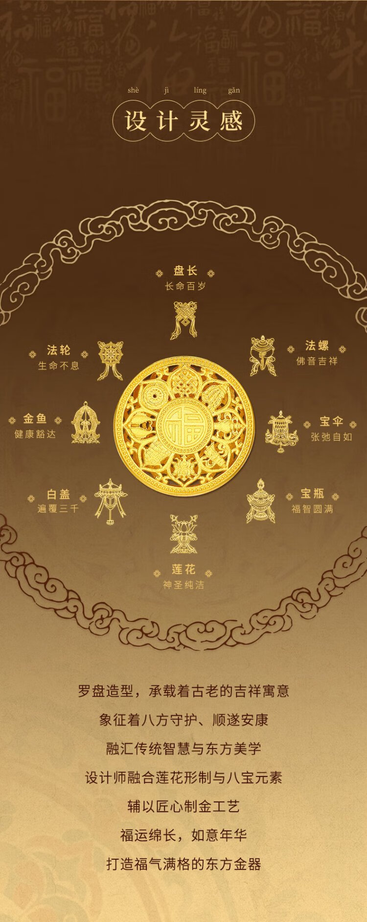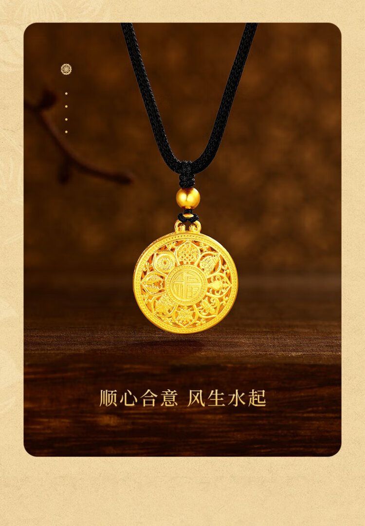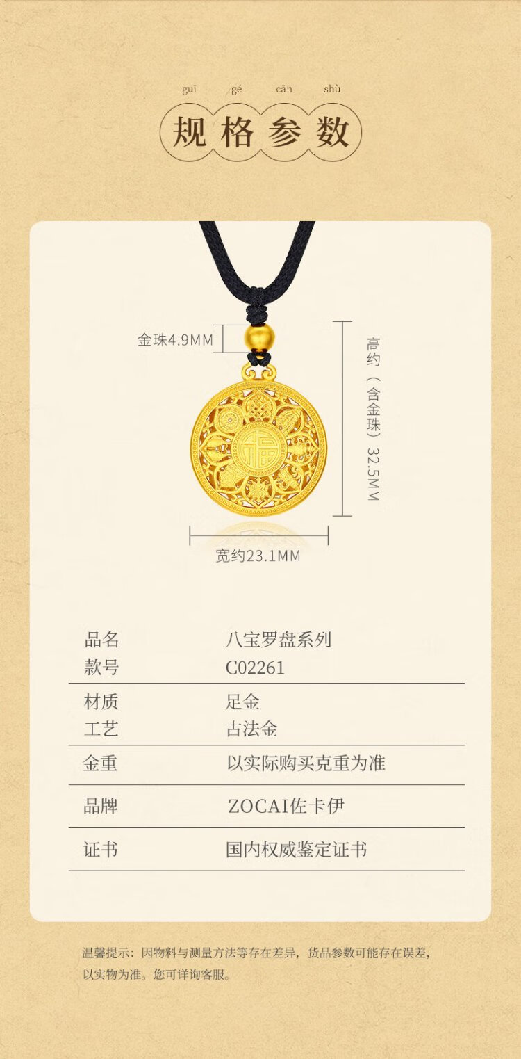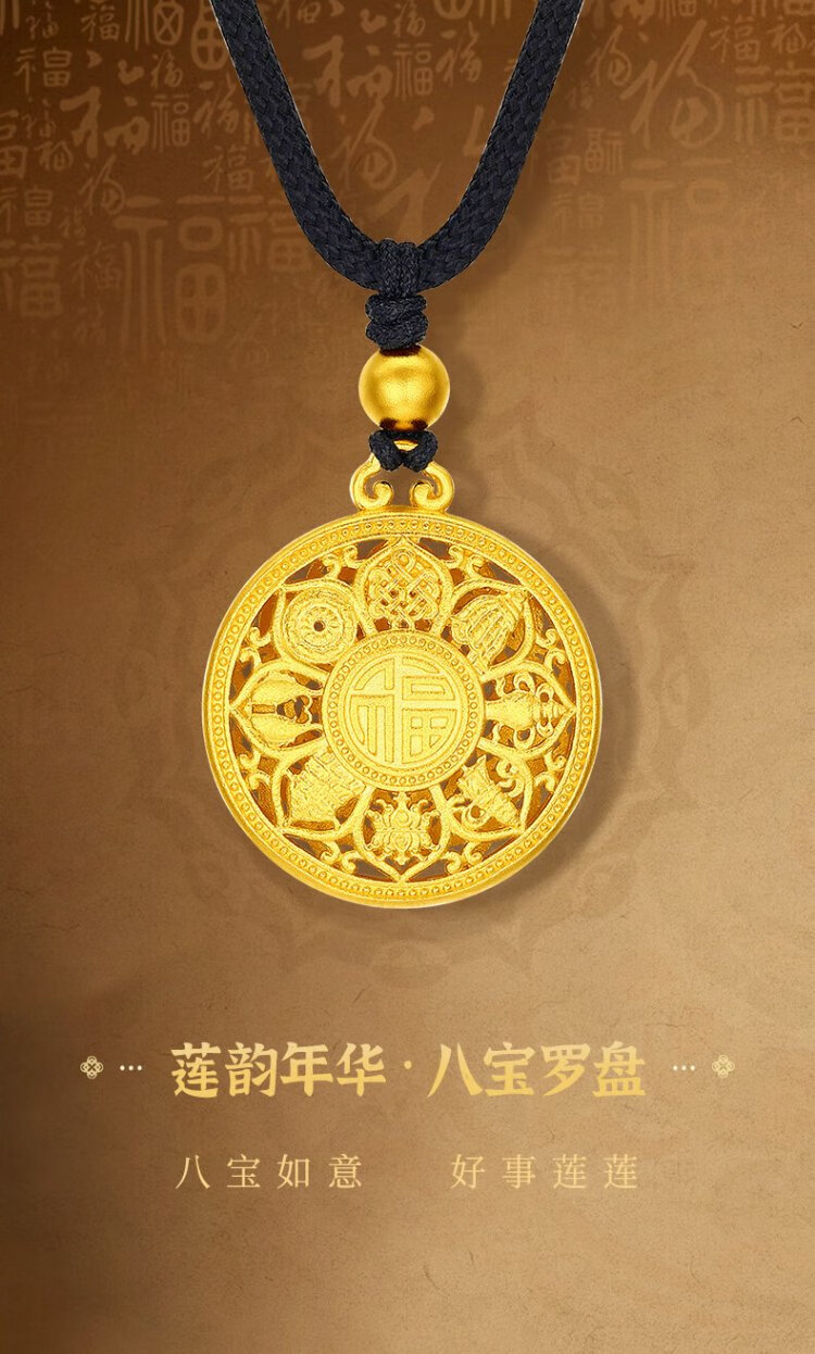Zokai gold pendant women's football gold eight treasures compass gold necklace national style birthday gift for elders about 1.2 grams