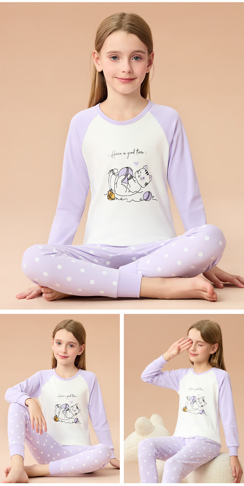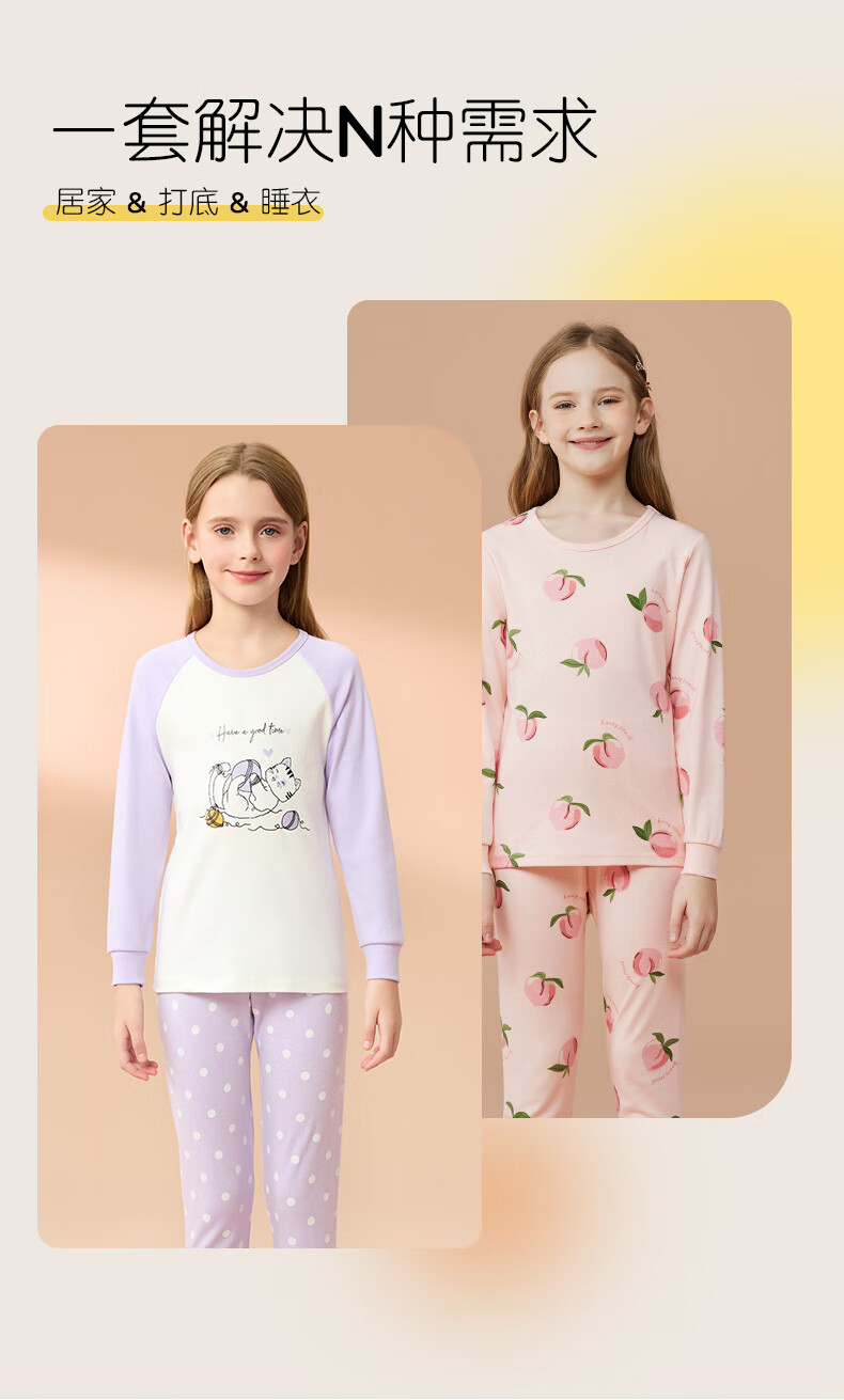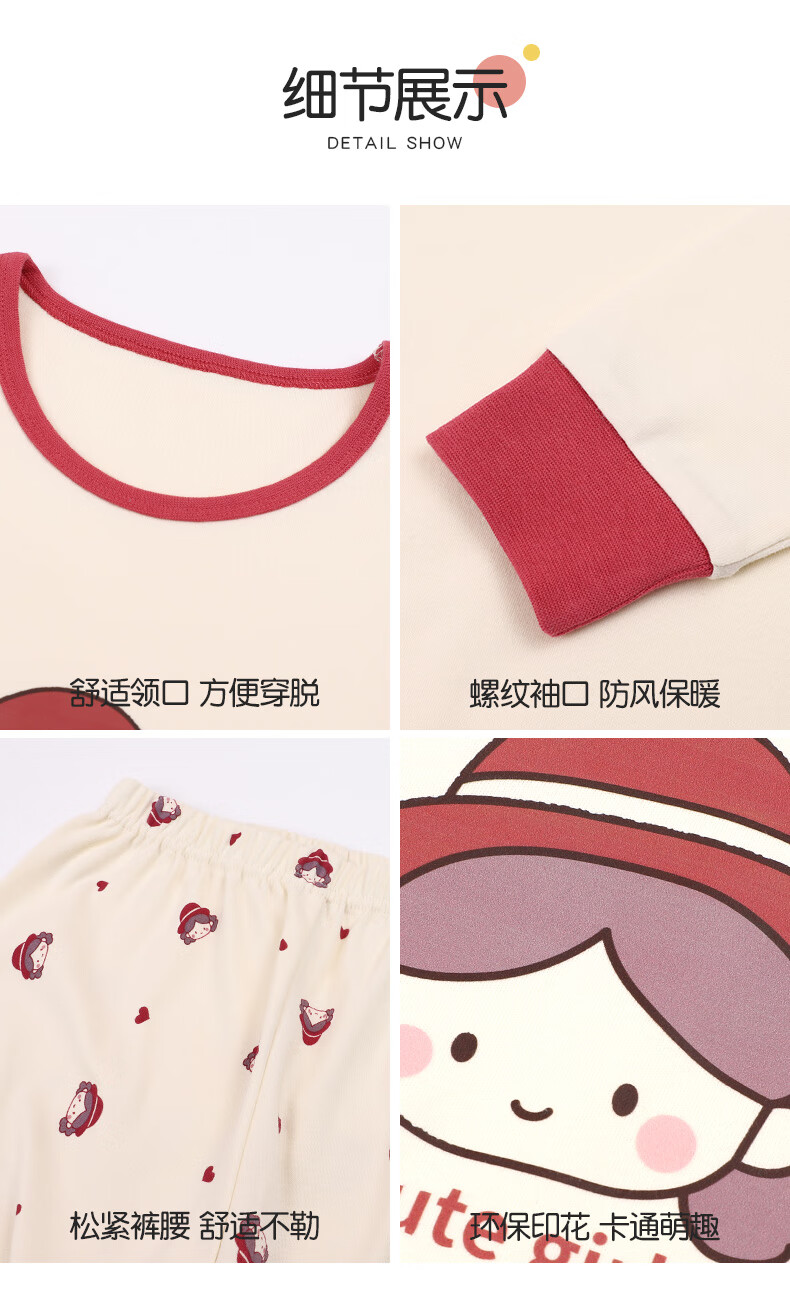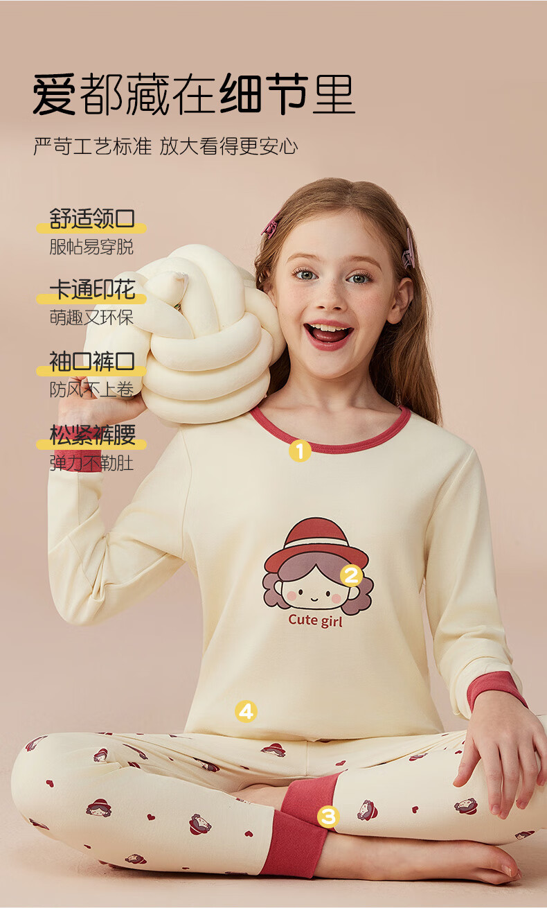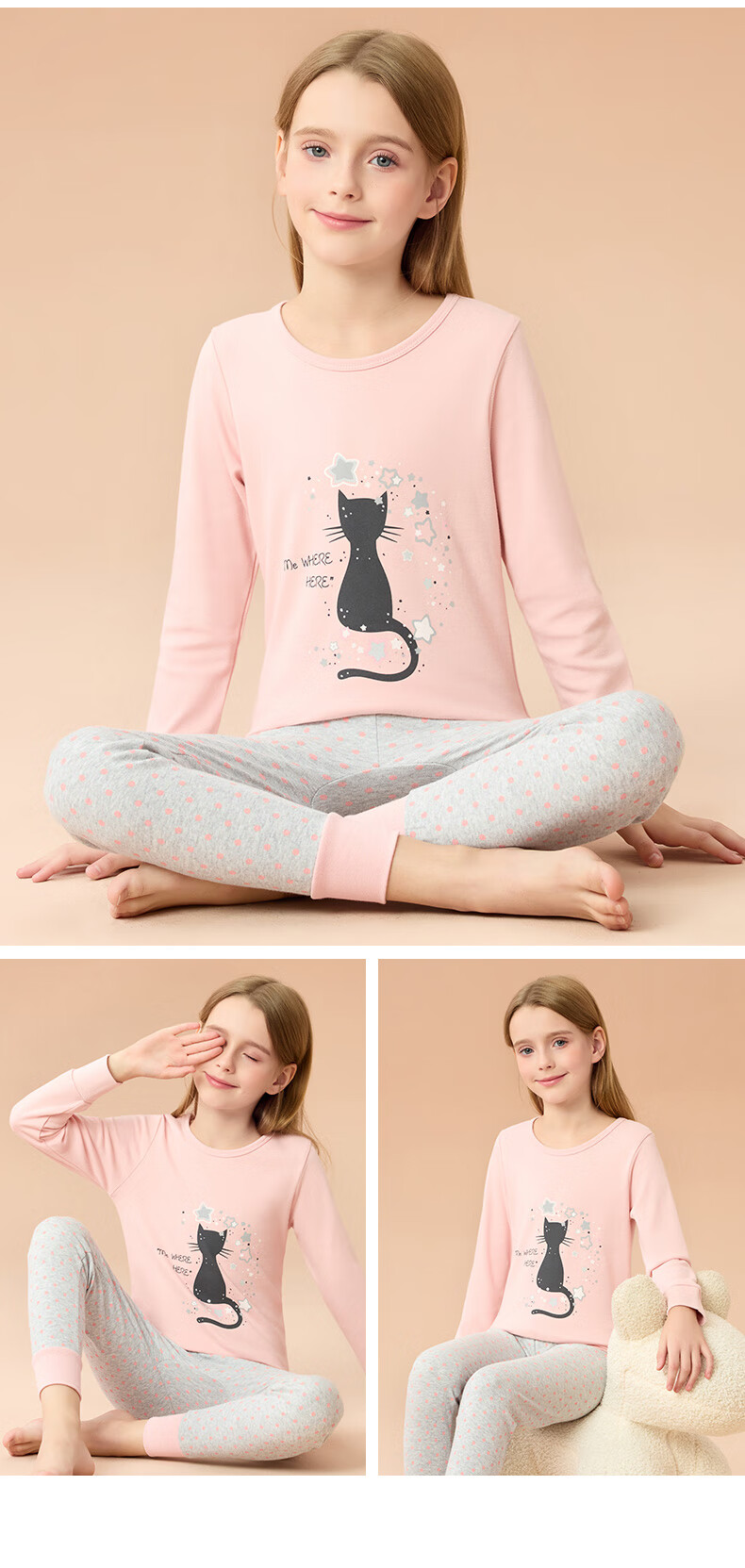 Catman Children's Underwear Set Pure Cotton Girls' Autumn Clothes and Autumn Pants Medium and Large Children's Bottoming Cotton Sweater Cute Girls 150