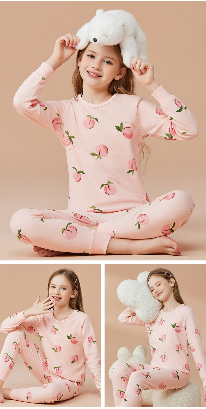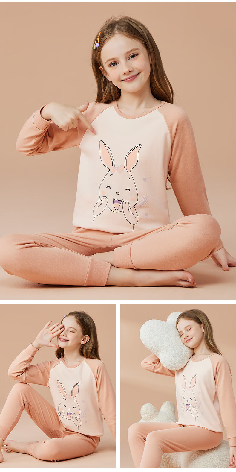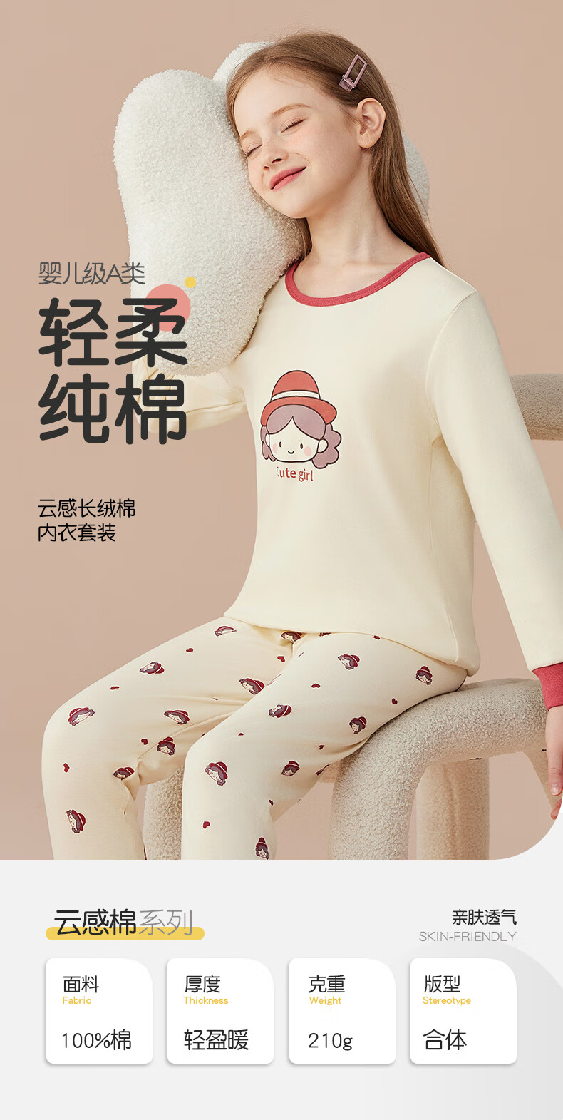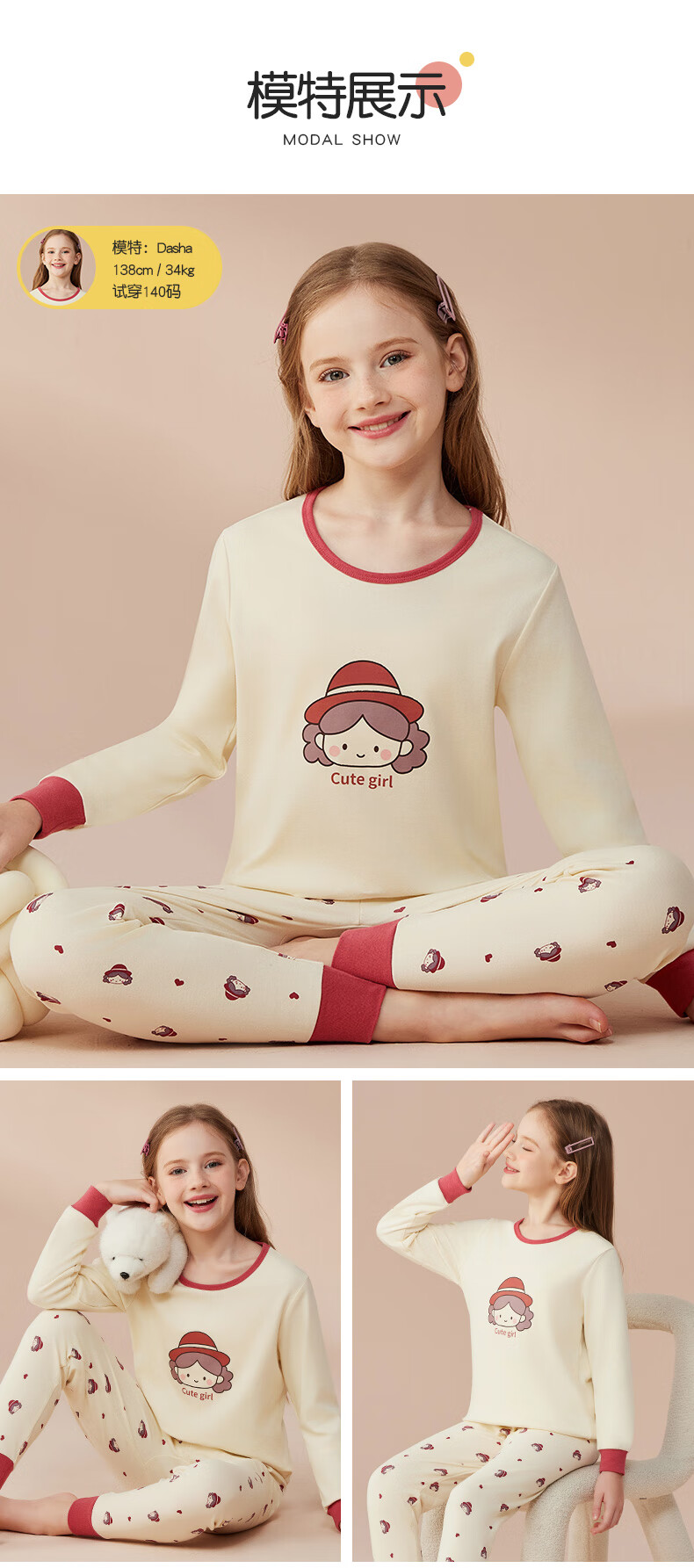 Catman Children's Underwear Set Pure Cotton Girls' Autumn Clothes and Autumn Pants Medium and Large Children's Bottoming Cotton Sweater Cute Girls 150