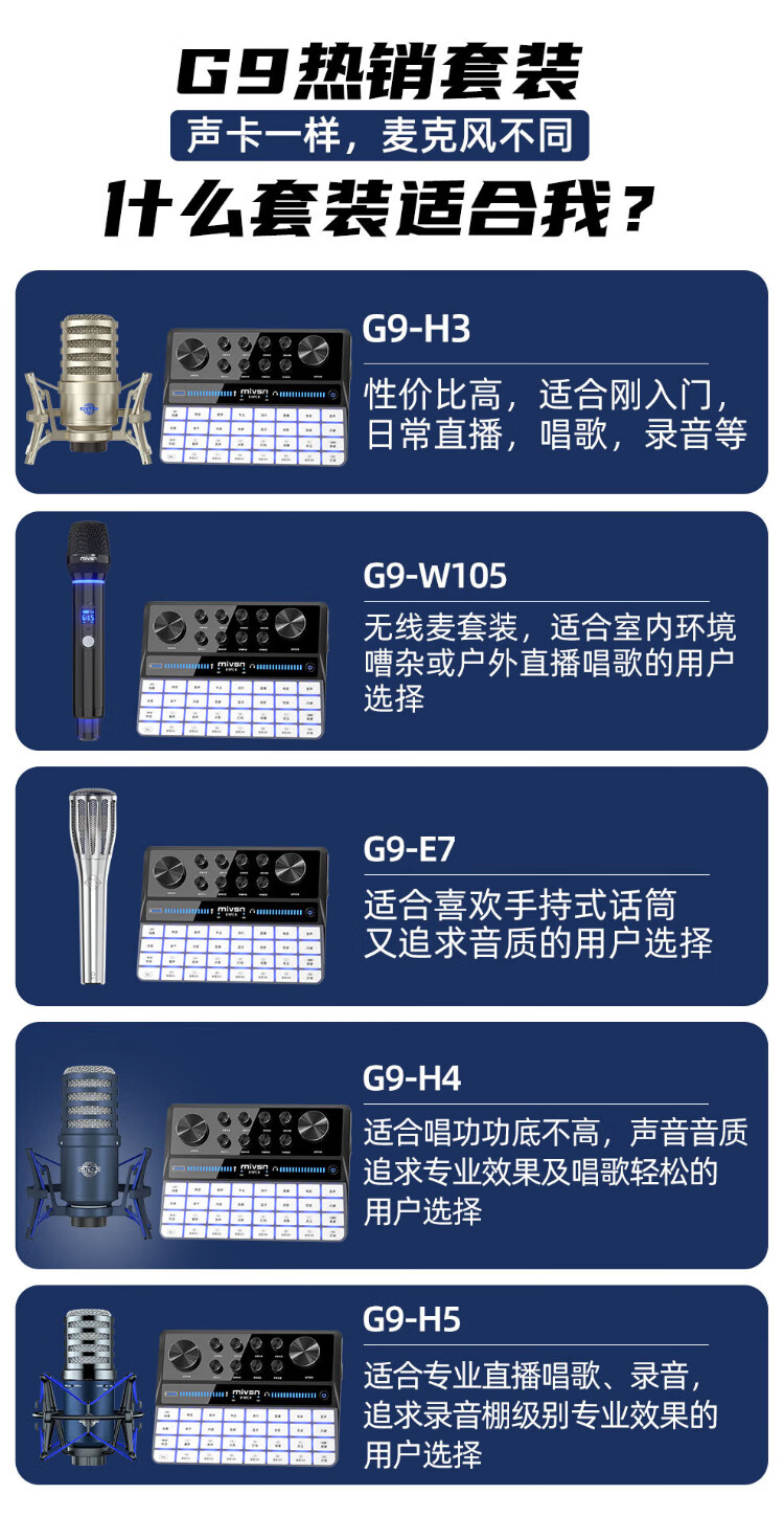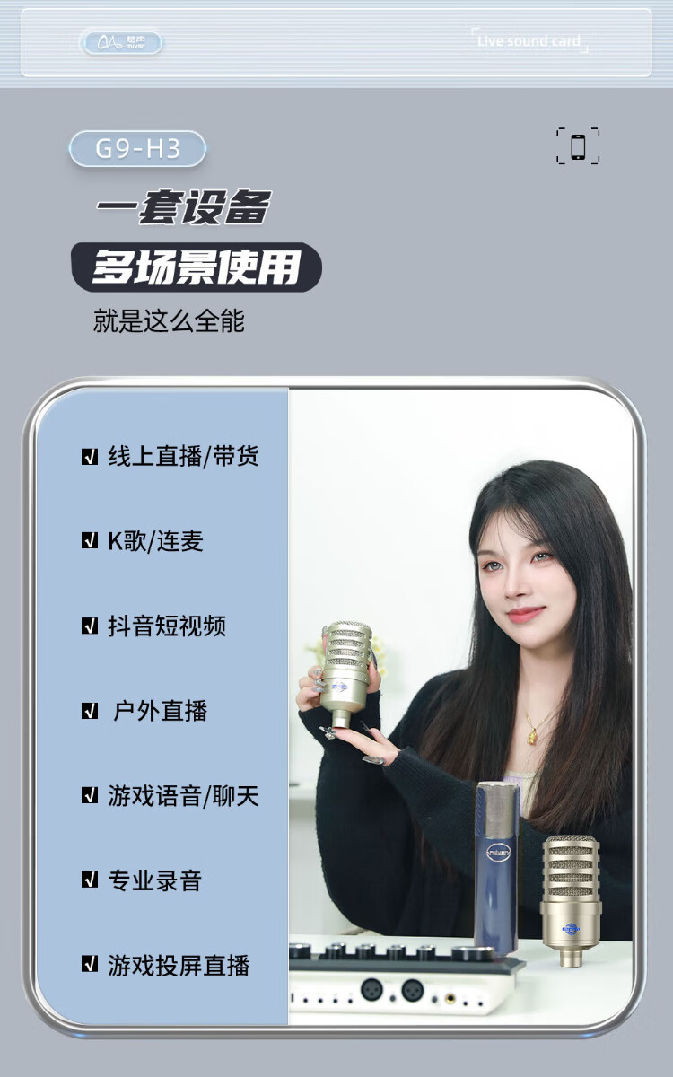 Meisheng G9 sound card live broadcast equipment complete set K song dedicated Douyin anchor singing recording mobile phone computer universal professional mixer outdoor wireless microphone condenser microphone