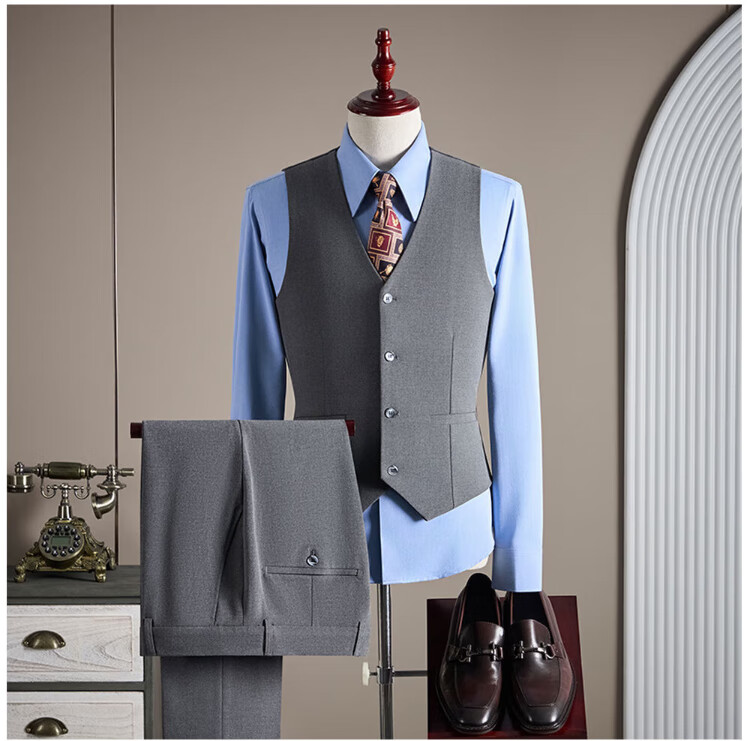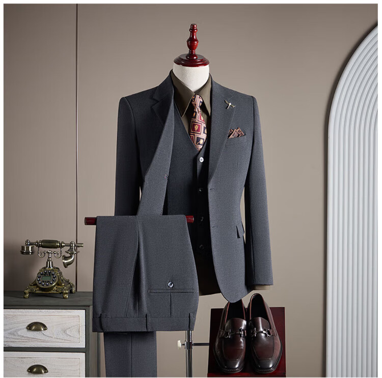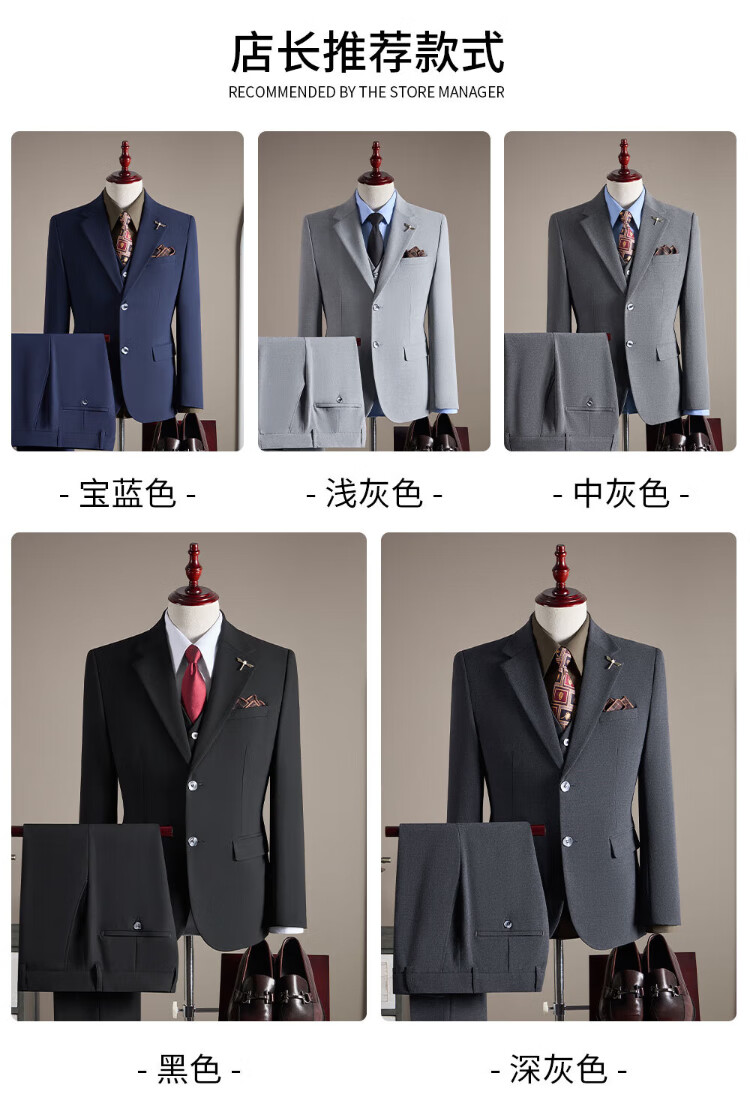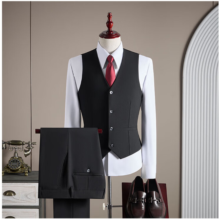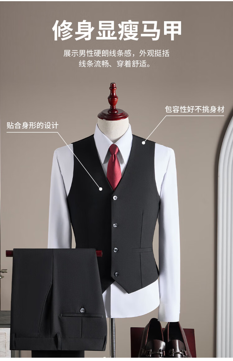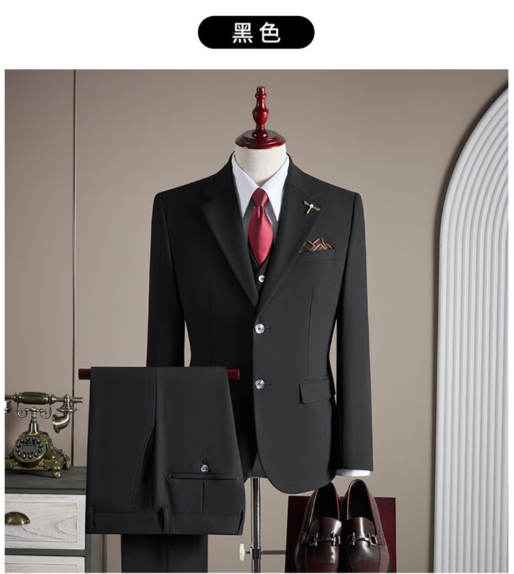 ROMON suit + vest + trousers suit suit men's business professional formal jacket black 4XL
