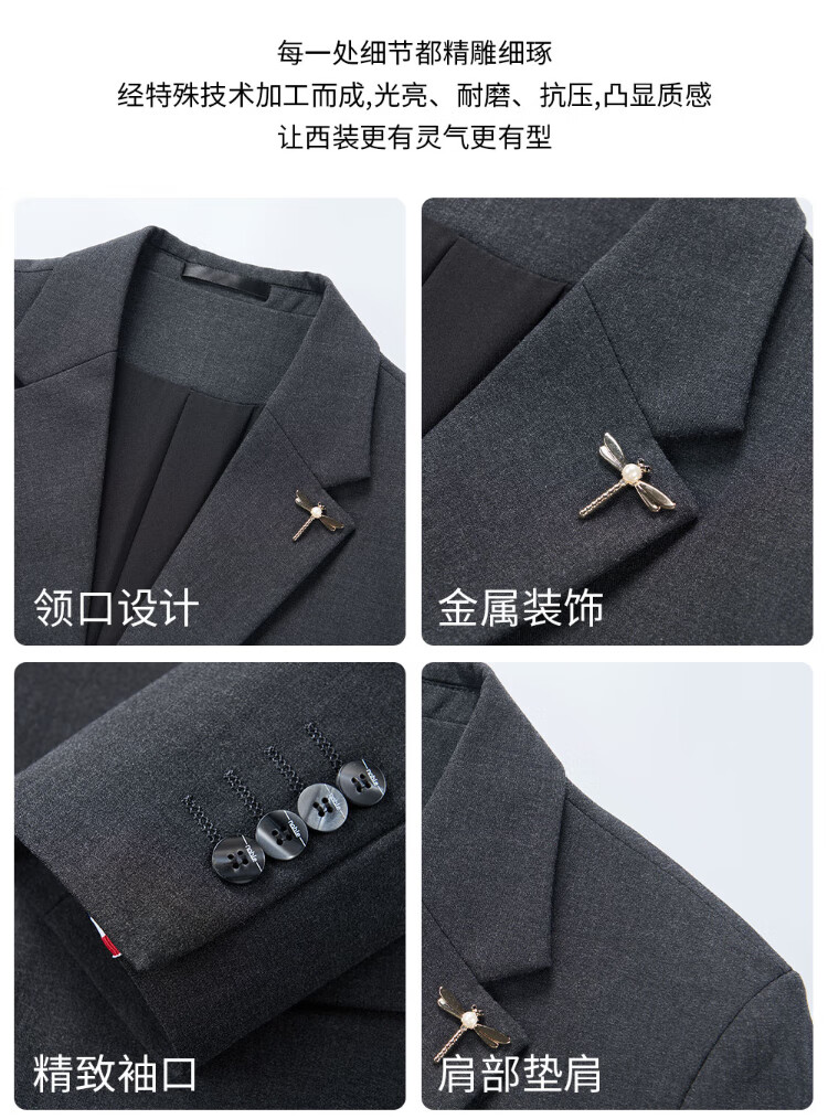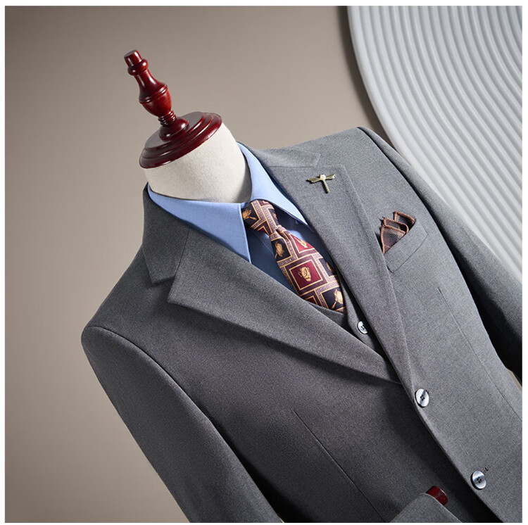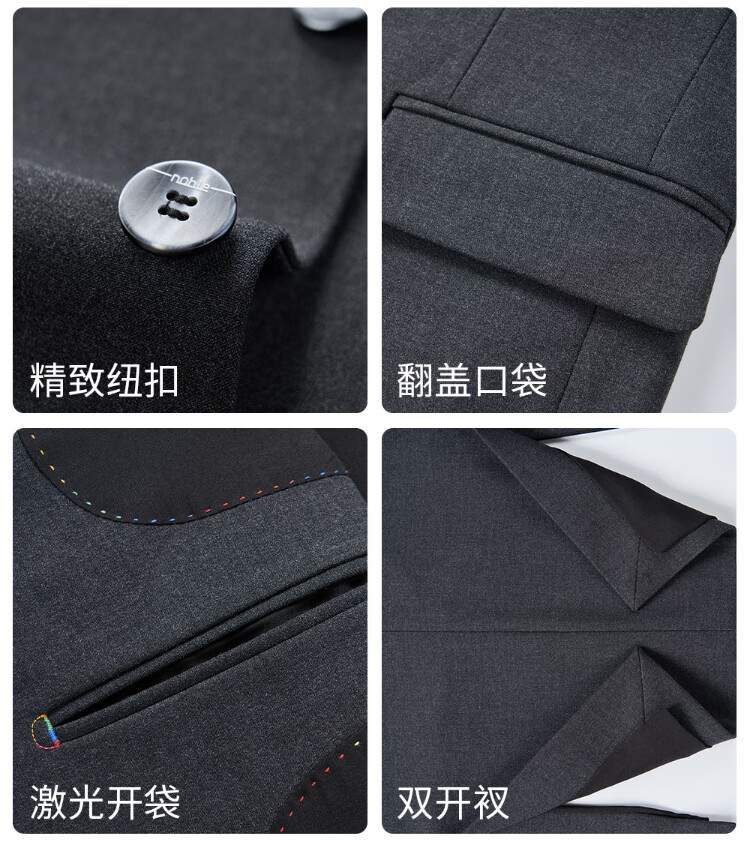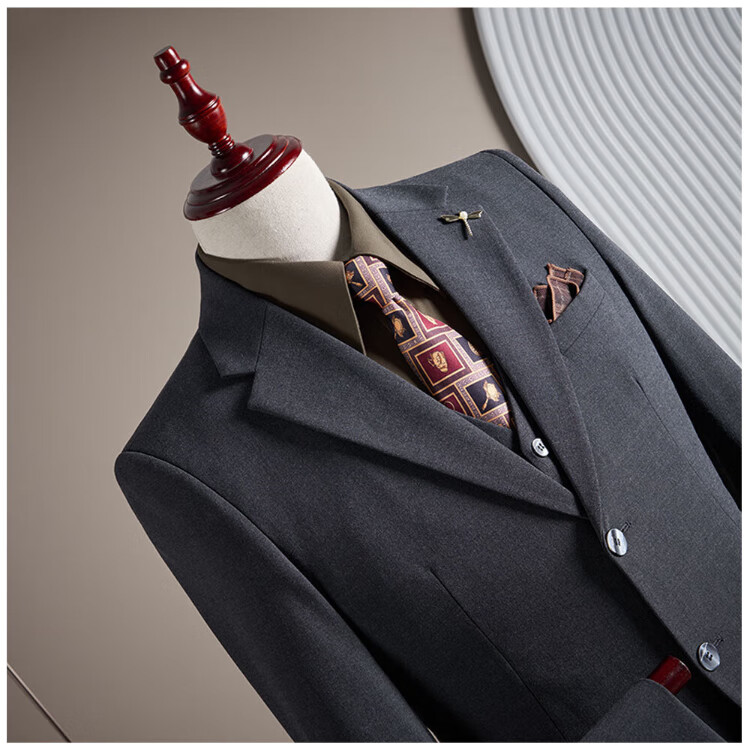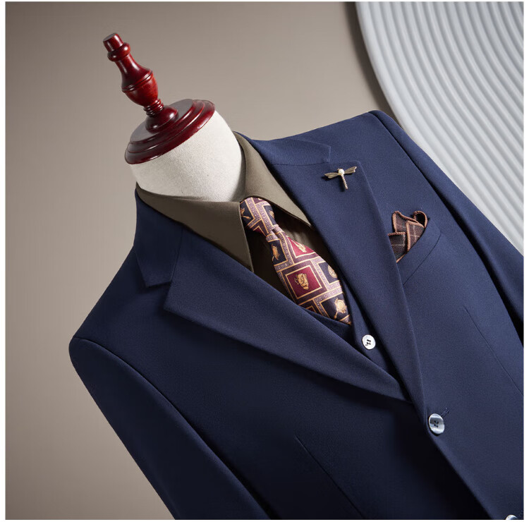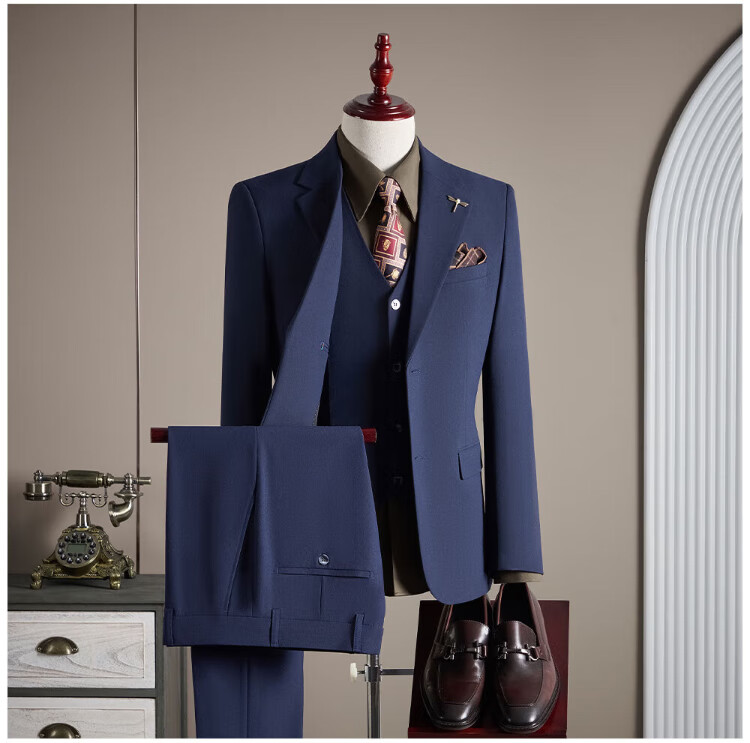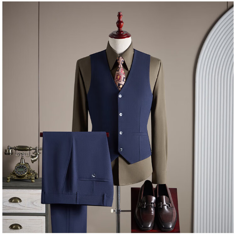 ROMON suit + vest + trousers suit suit men's business professional formal jacket black 4XL