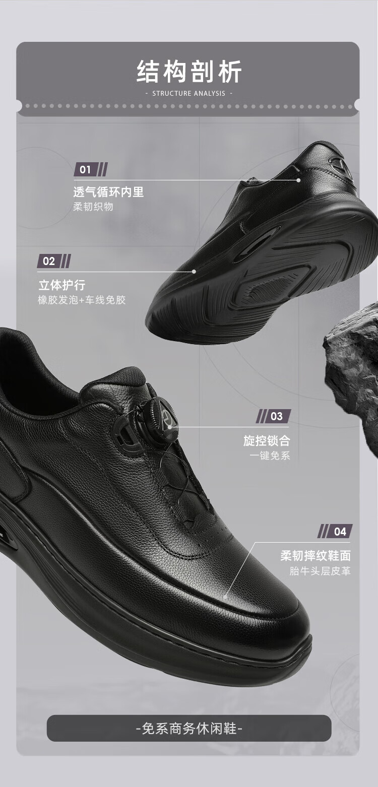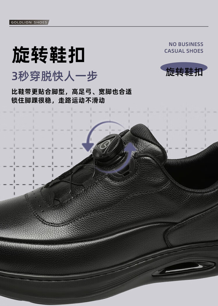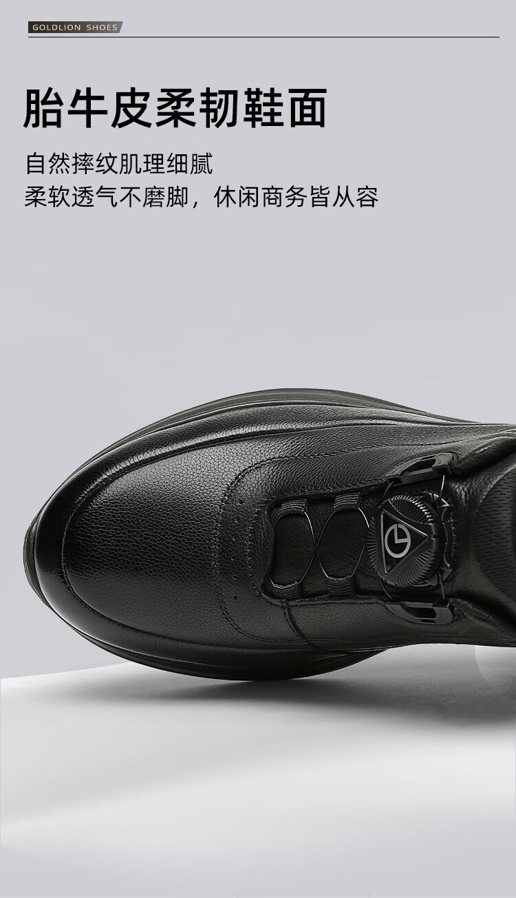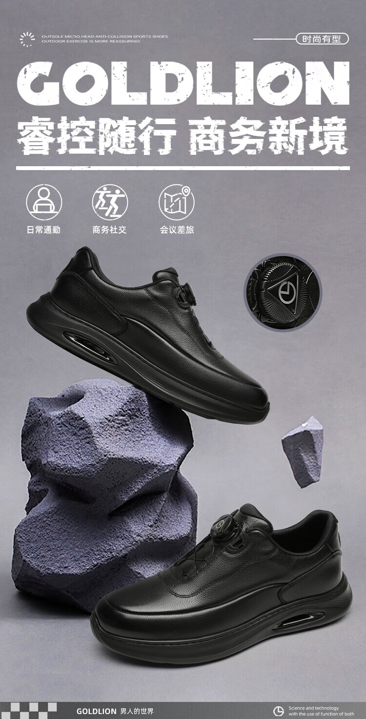 Goldlion men's shoes 25 autumn men's free business casual shoes soft and comfortable heightening sports shoes black 42