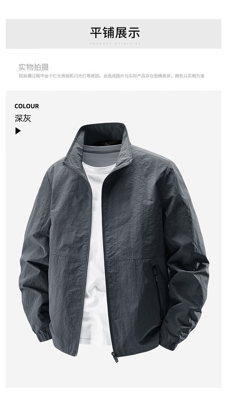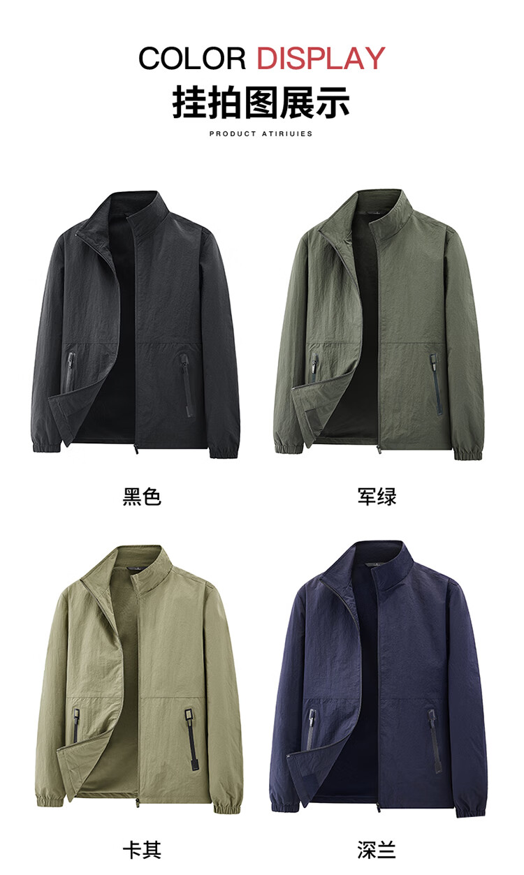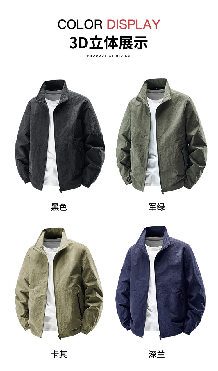 Romon Jacket Men's Jacket Men's Spring and Autumn New Stand Collar Outdoor Charge Top Sports Casual Men's Black XL