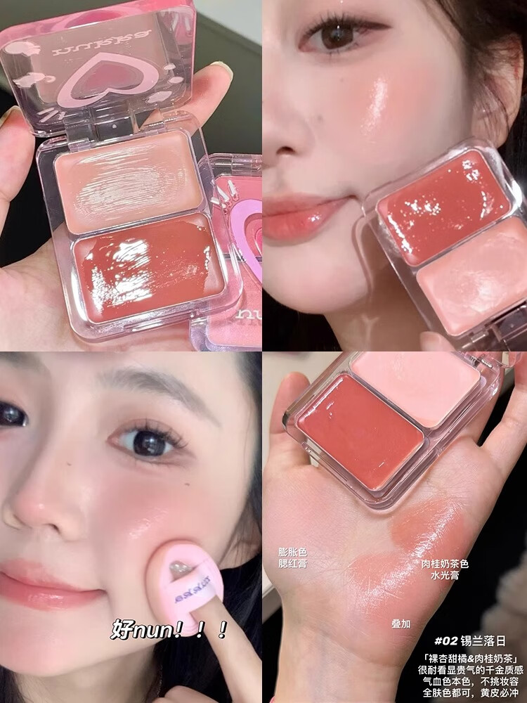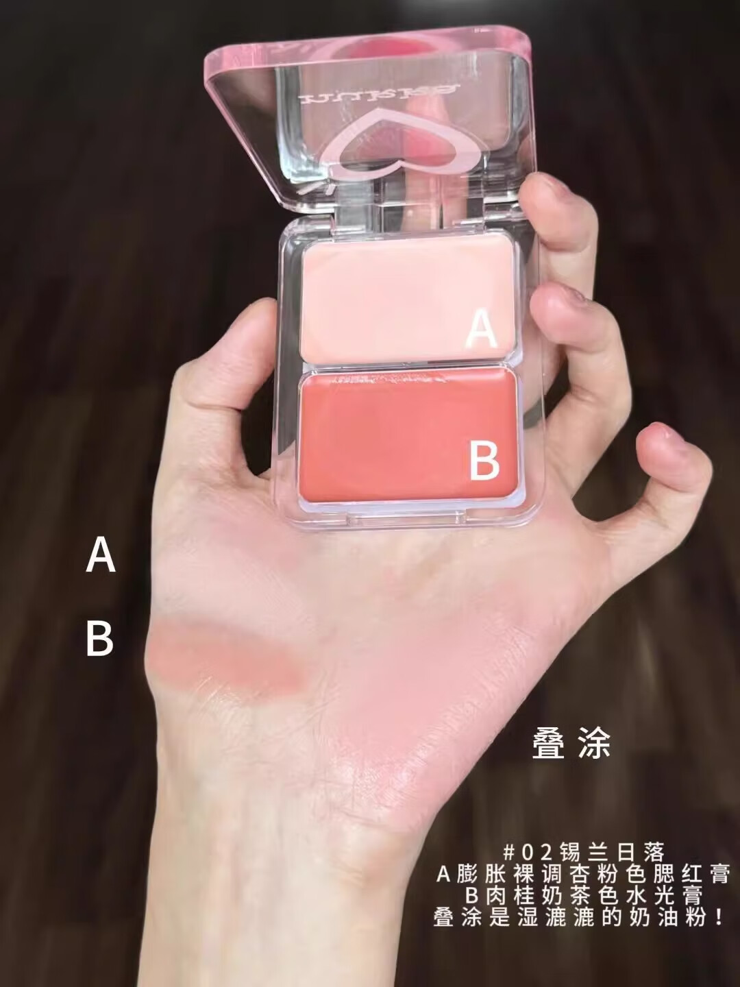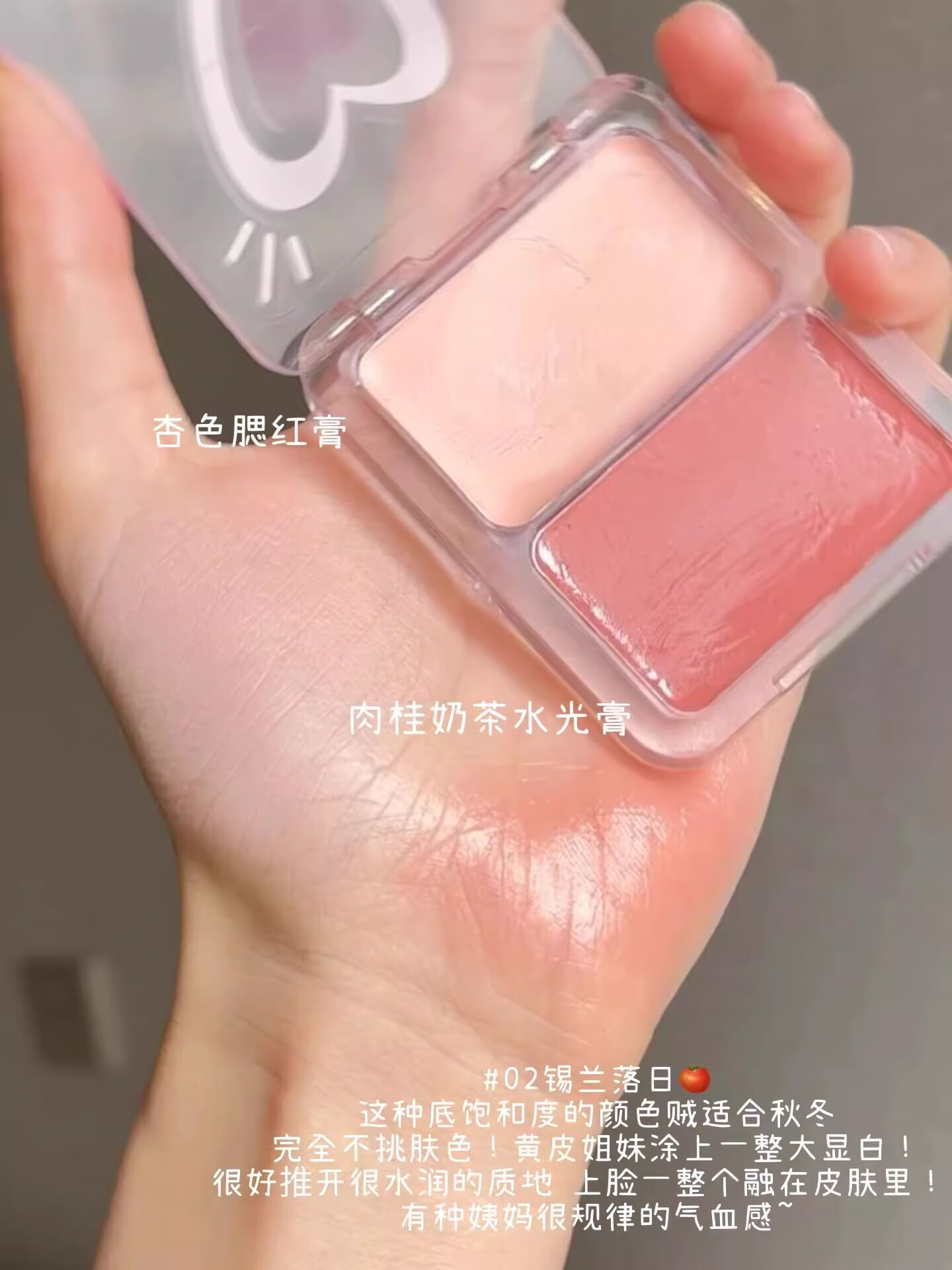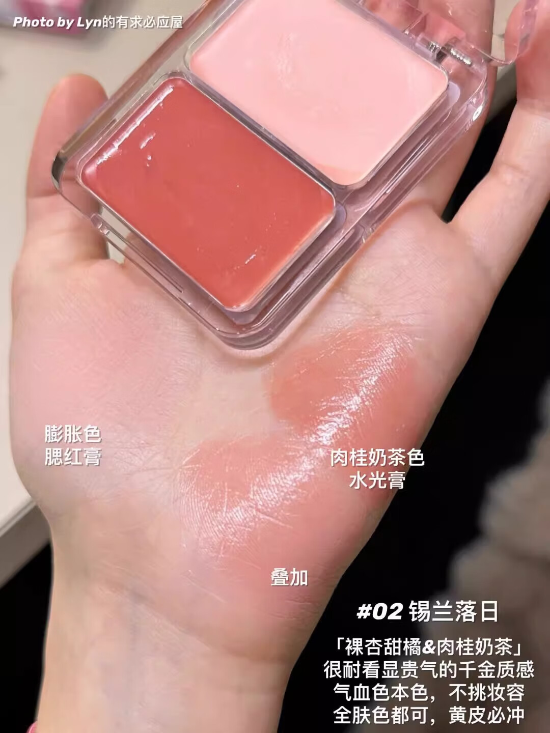 Gemeng water-glow blush palette two-color multi-purpose cream highlight contouring and brightening natural blush 02