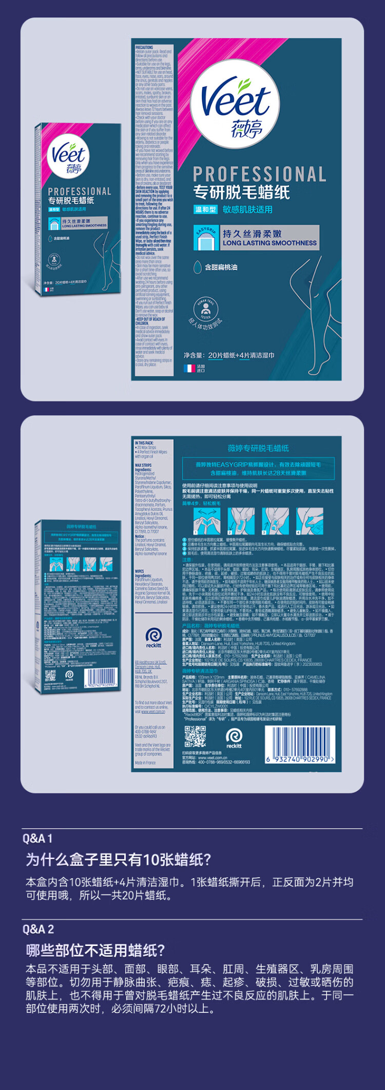 Veting specializes in hair removal wax paper, suitable for delicate skin, 20 pieces, beeswax for male and female students to remove hair in V-zone private parts