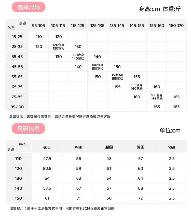 China (cm) 160-165/84-86 165-170 / 88-90 167-172 / 92-96 168-173 / 98-102 170-176 / 106-110