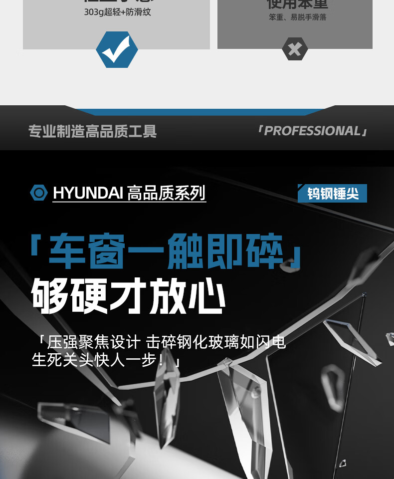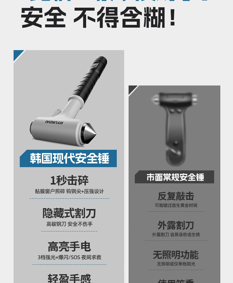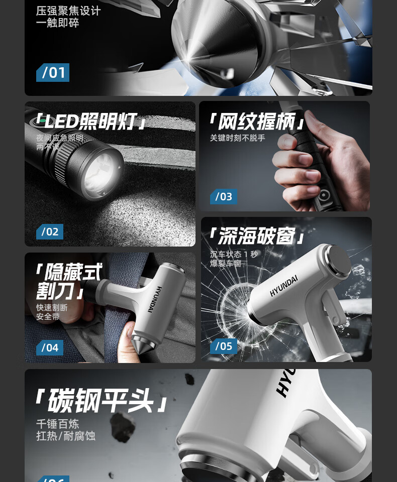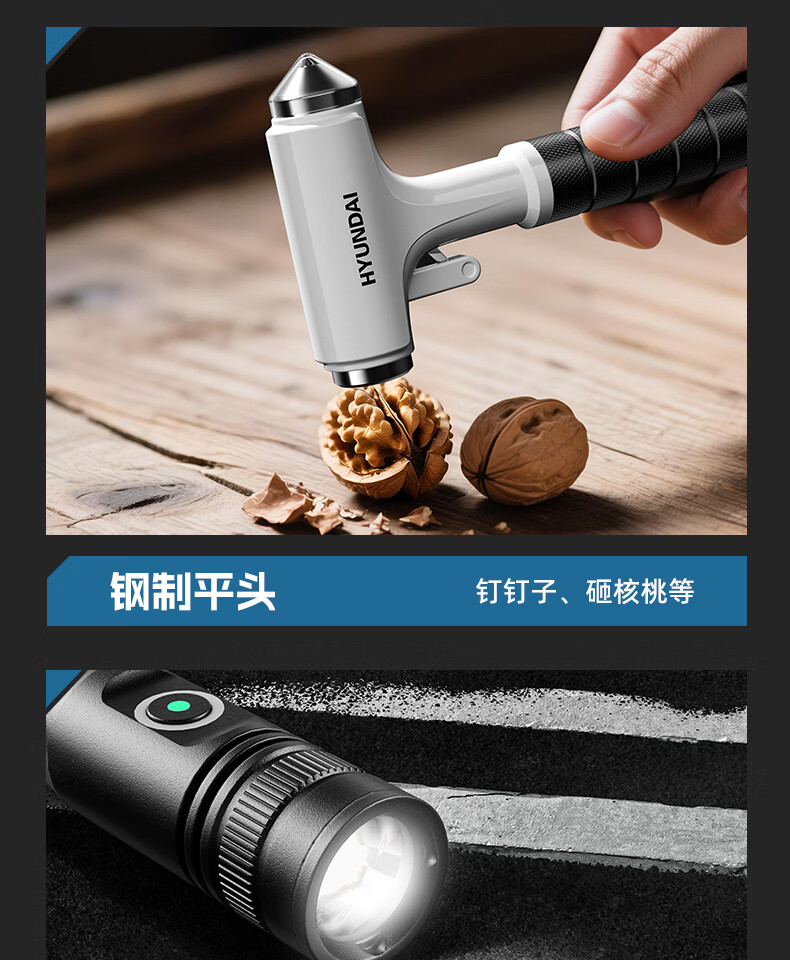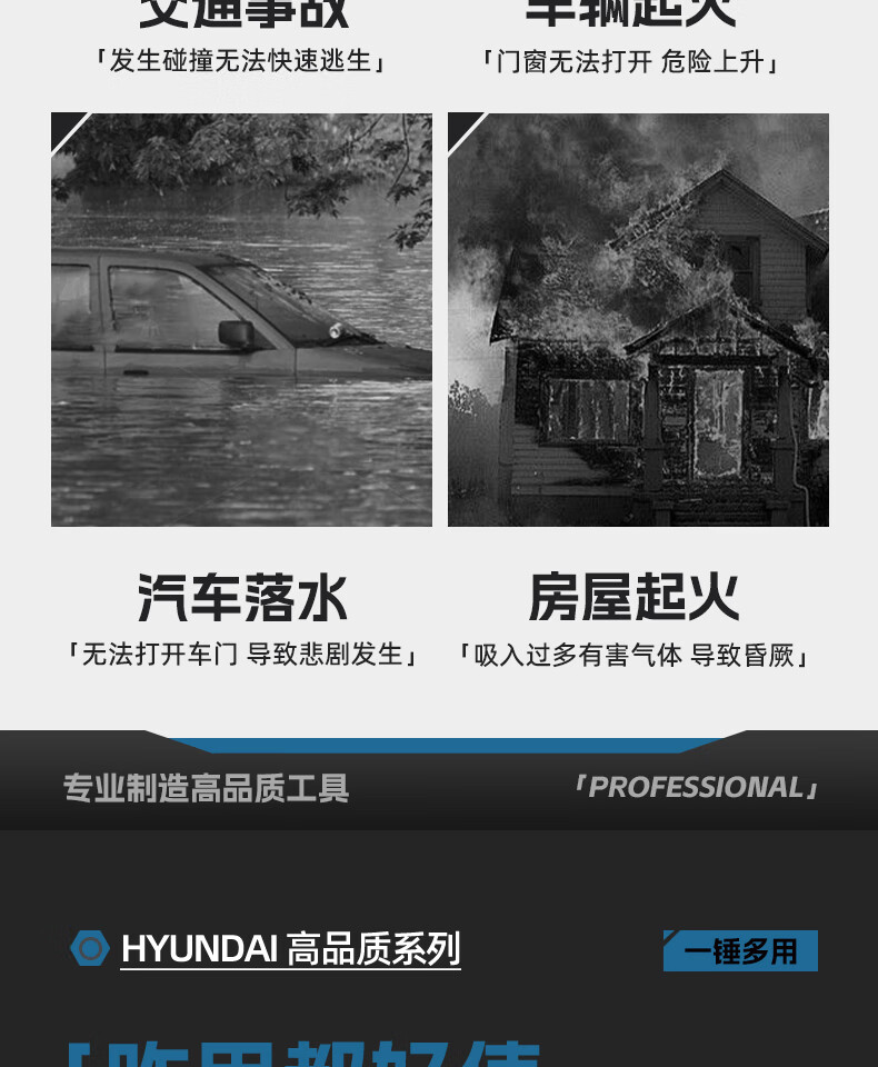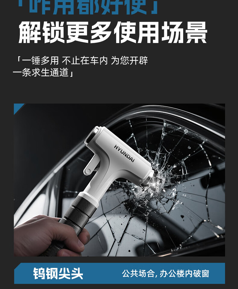 HYUNDAI car safety hammer heavy-duty three-in-one multi-functional self-rescue emergency vehicle-mounted window-breaking emergency escape hammer