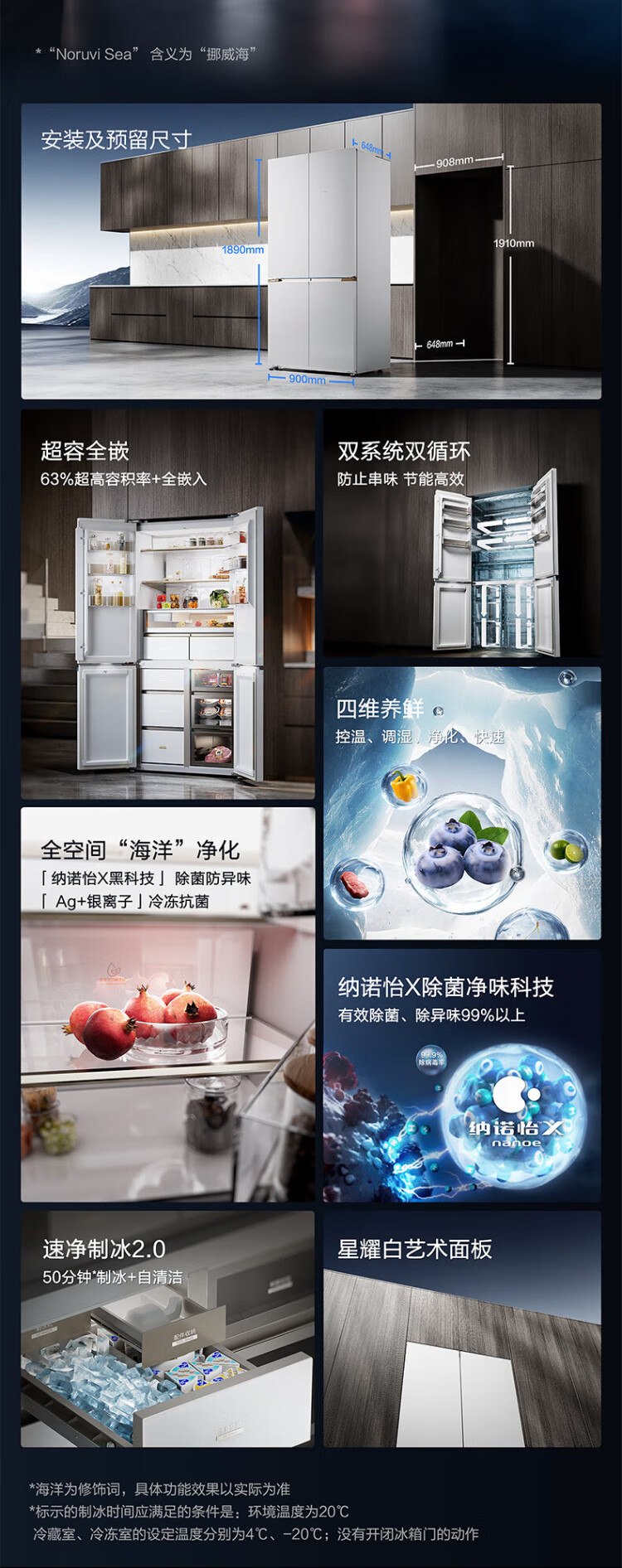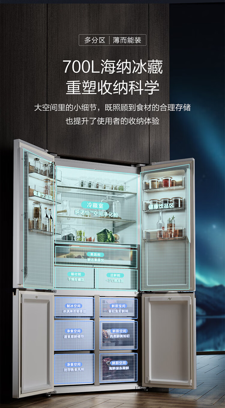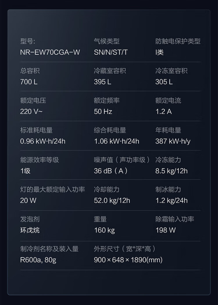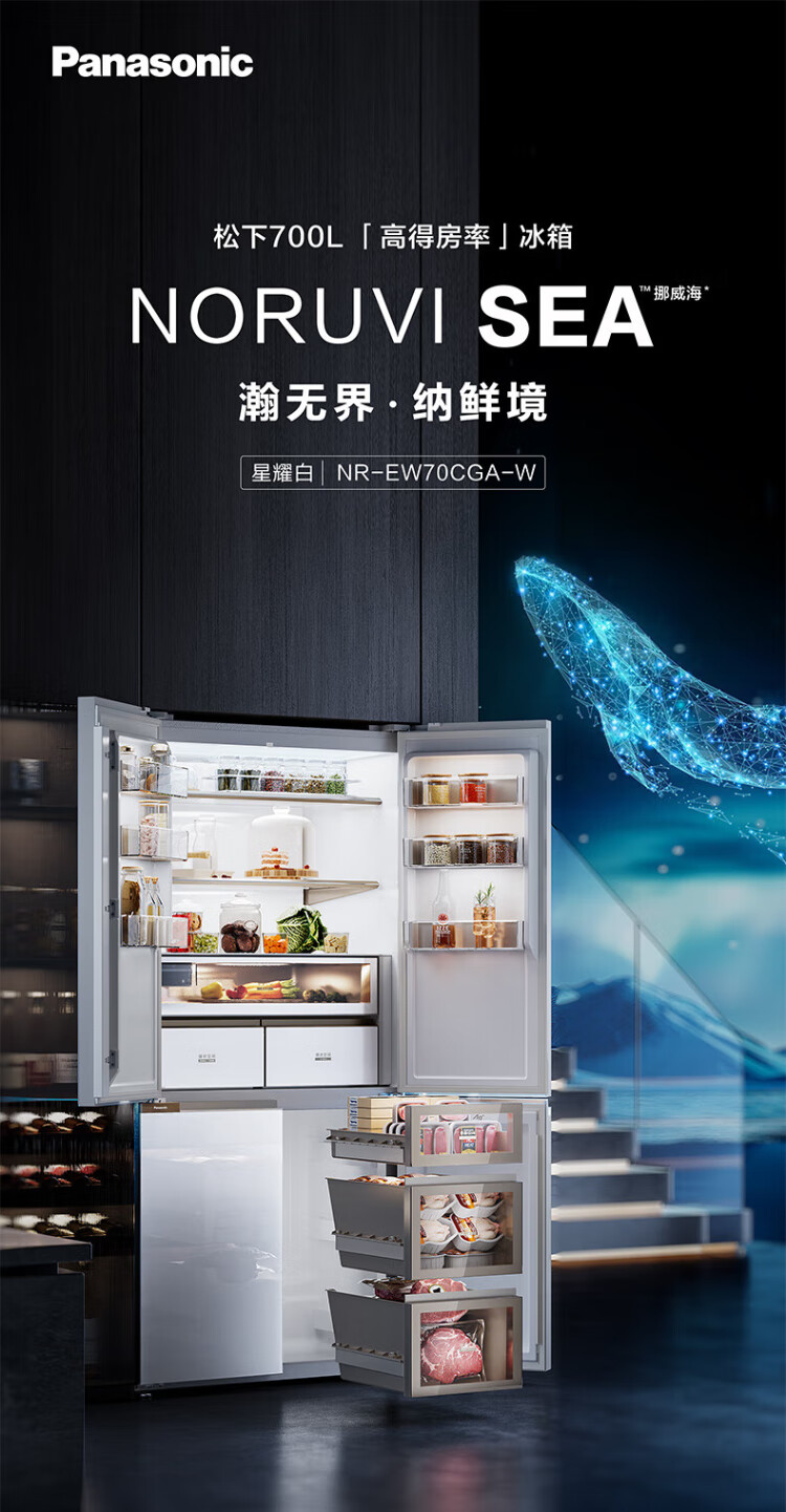 Panasonic Norwegian Sea 700L cross-door refrigerator double-door household fully embedded dual-system air-cooled frost-free first-class energy efficiency NR-EW70CGA-W 20% national subsidy
