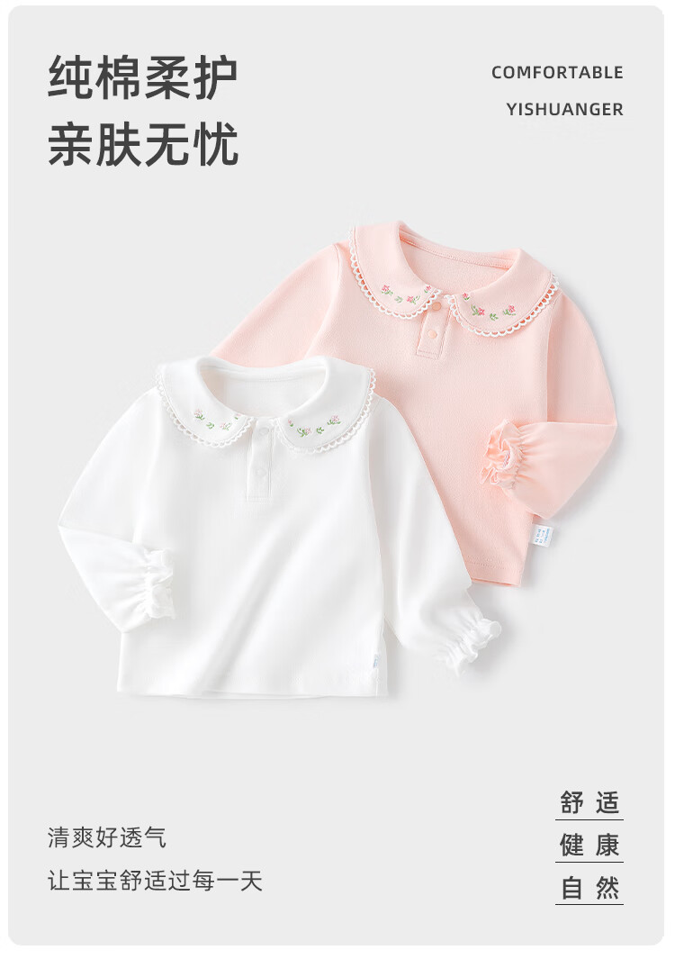 Yishuanger girls T-shirt spring and autumn baby girl sweet casual top doll collar bottoming shirt white 120