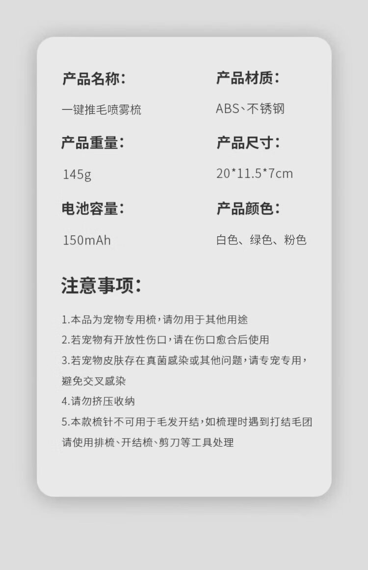 Repair medical pet cat comb spray to remove floating hair artifact cat combing special dog pet dog bath cleaning brush supplies