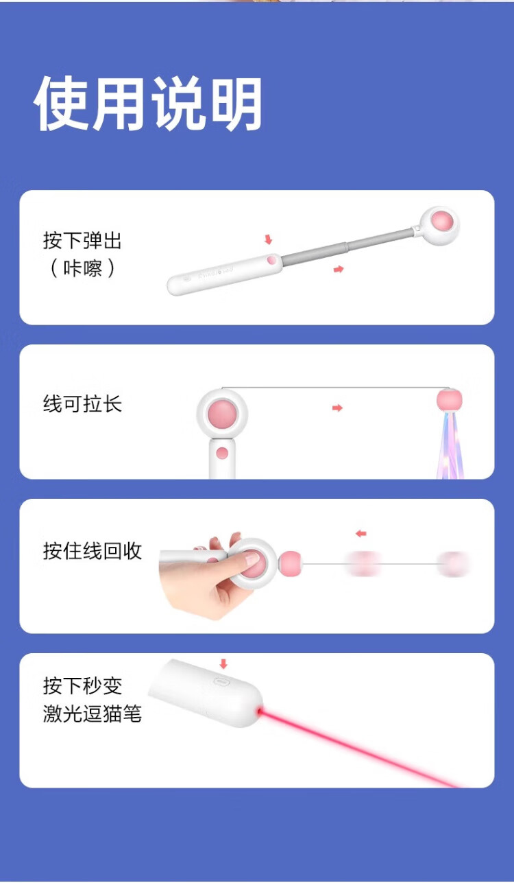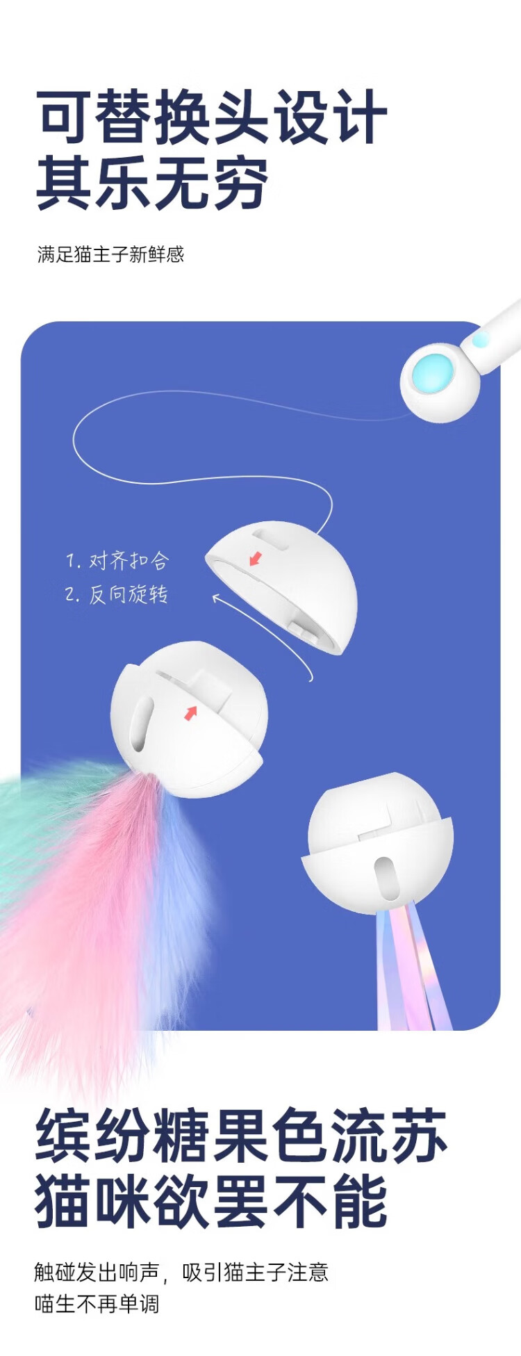 Repair medical pet funny cat stick cat toy self-entertainment and boredom relief laser light telescopic long pole bite-resistant feather replacement head cat supplies