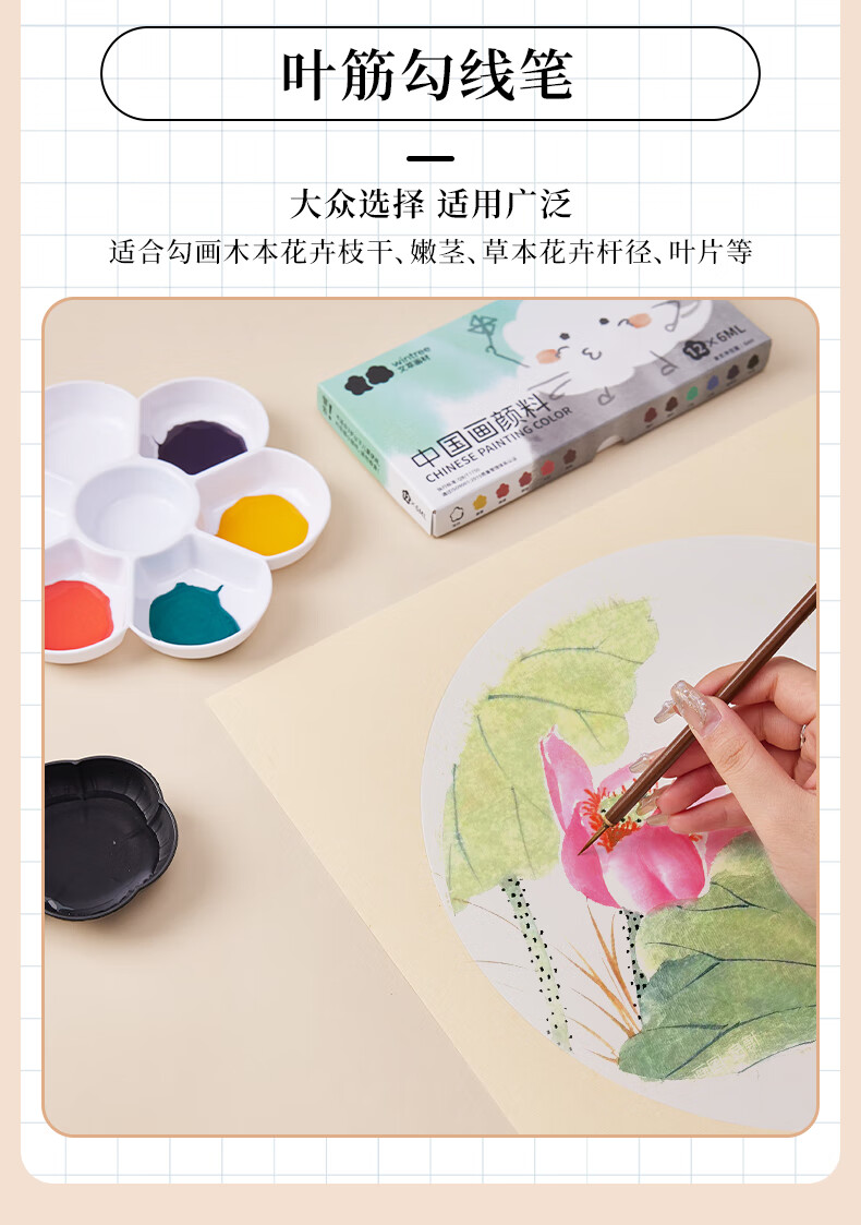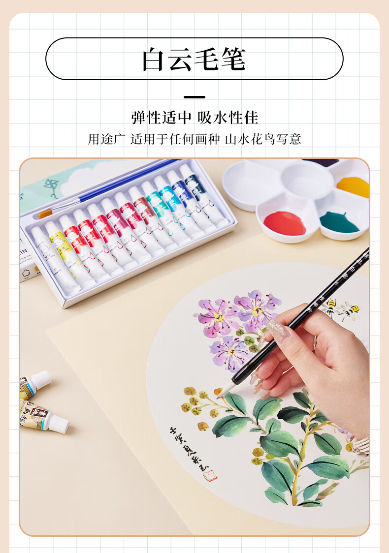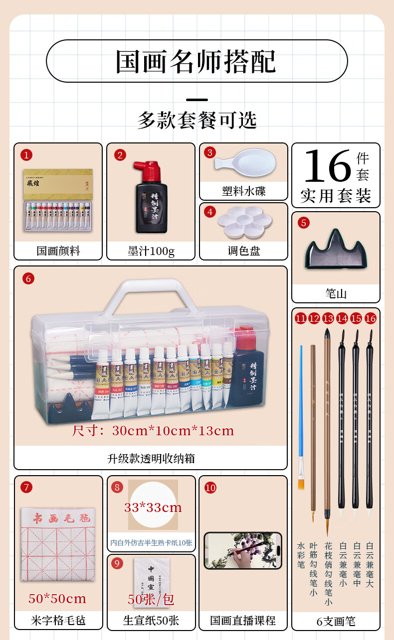 Jiuqi study Chinese painting set for beginners 12-color Chinese painting supplies and tools full set of ink painting Chinese painting professional meticulous painting set student and children's brush Chinese painting pigment 15-piece set