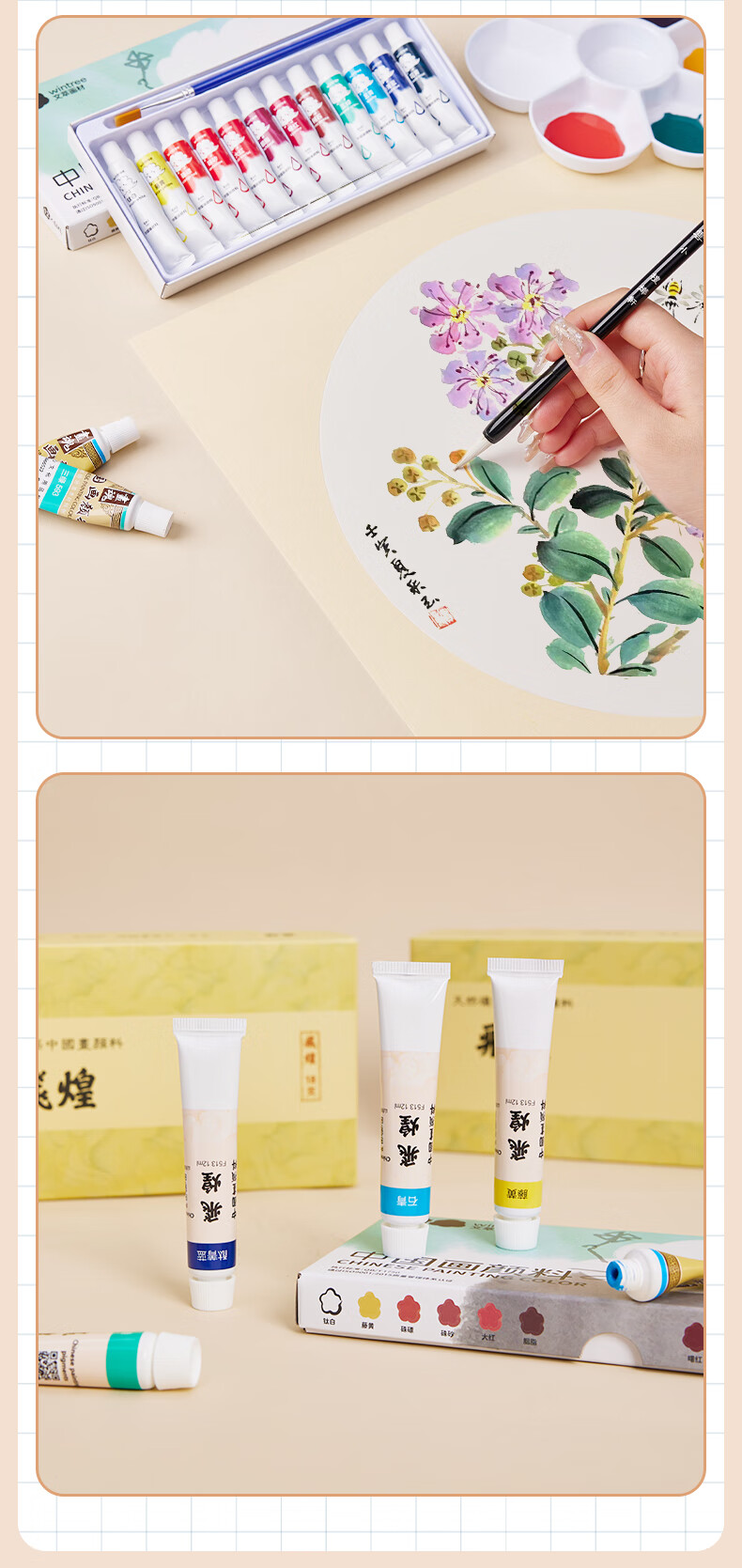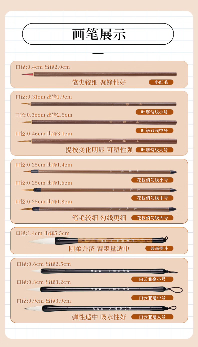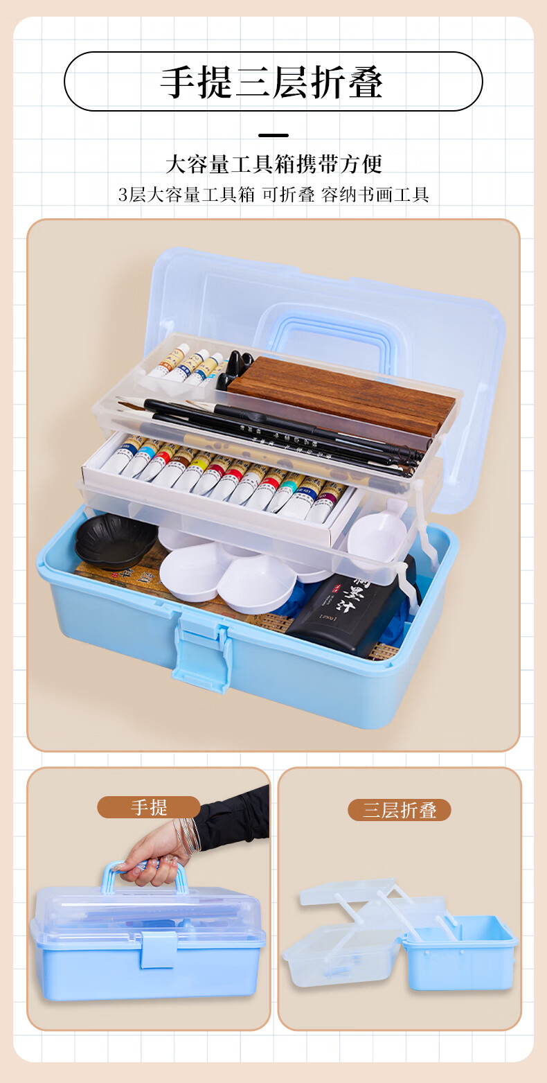 Jiuqi study Chinese painting set for beginners 12-color Chinese painting supplies and tools full set of ink painting Chinese painting professional meticulous painting set student and children's brush Chinese painting pigment 15-piece set