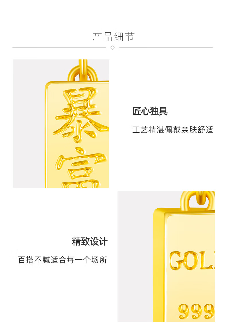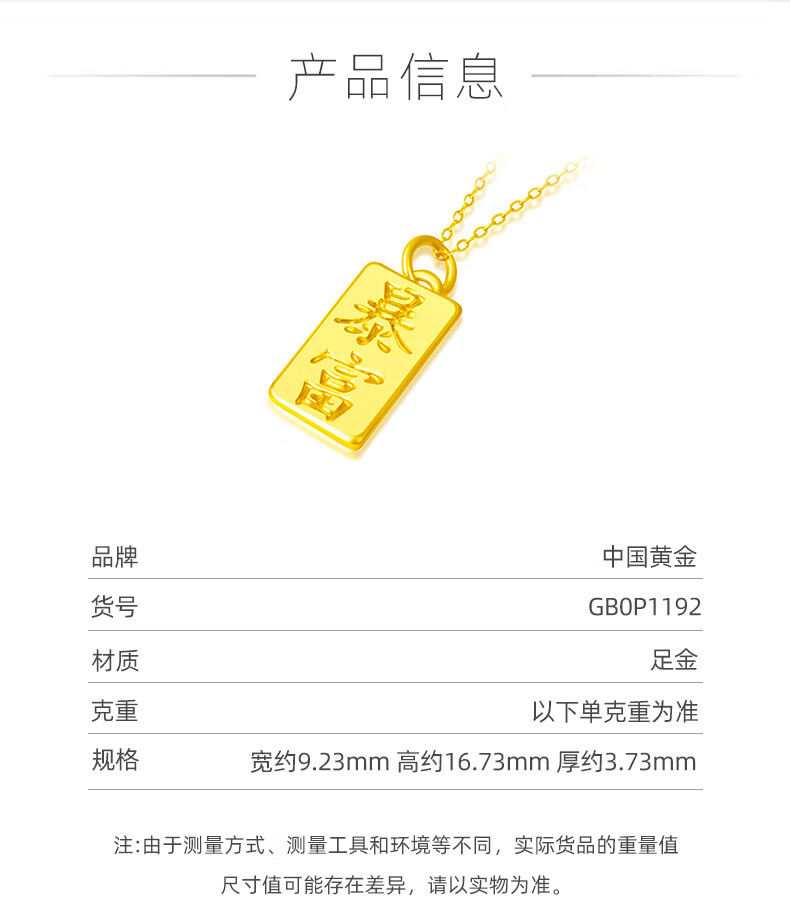 China's pure gold small gold brick gold brick pendant is simple, versatile and fashionable. Price is about 1g - necklace not included
