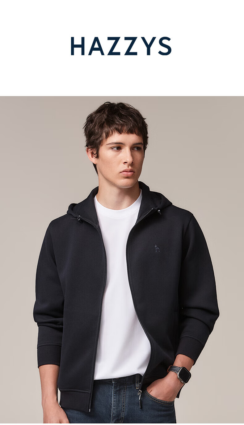 HAZZYS Men's Clothing Simple Casual Men's Jacket Zipper Cardigan Hooded Sweatshirt Men ABTZE0CDX33