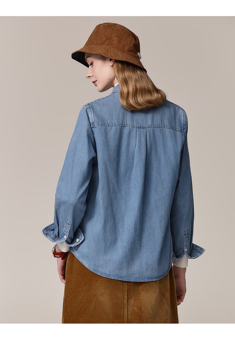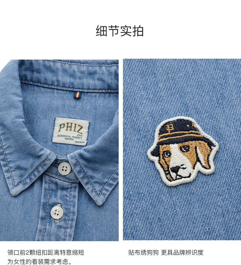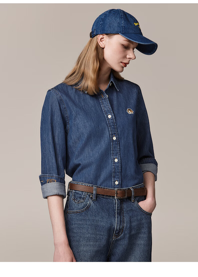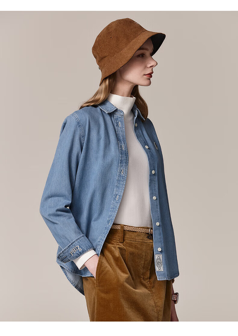 HAZZYS Women's Clothing Autumn Women's PHIZ Series Retro Washed Loose Casual Denim Shirt for Women