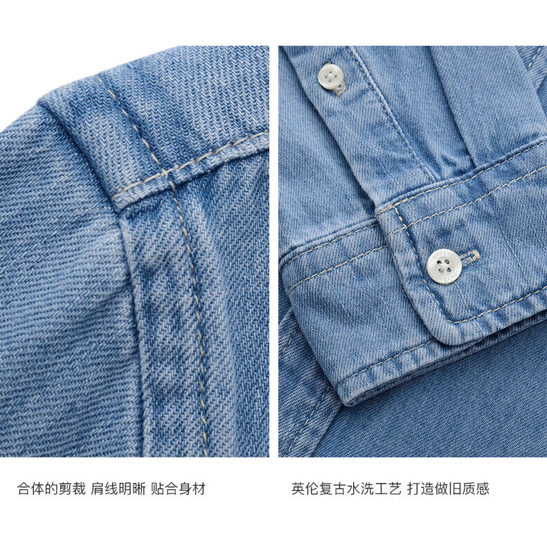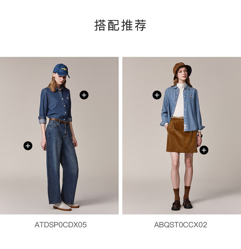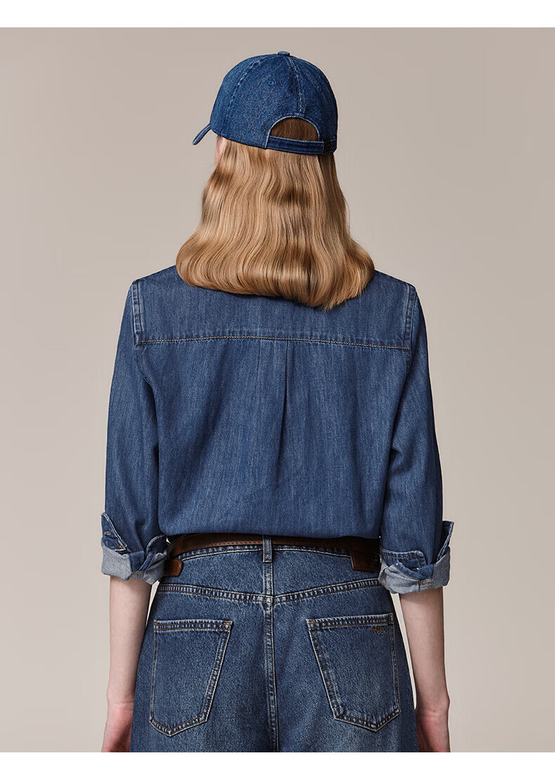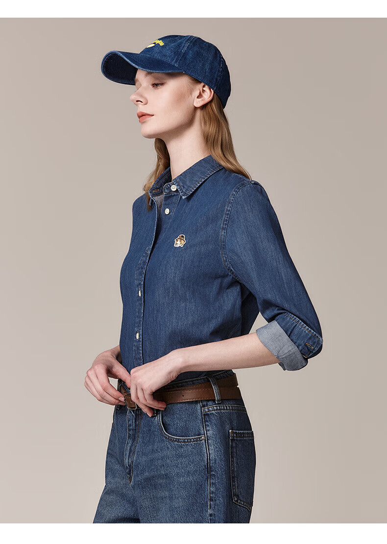 HAZZYS Women's Clothing Autumn Women's PHIZ Series Retro Washed Loose Casual Denim Shirt for Women